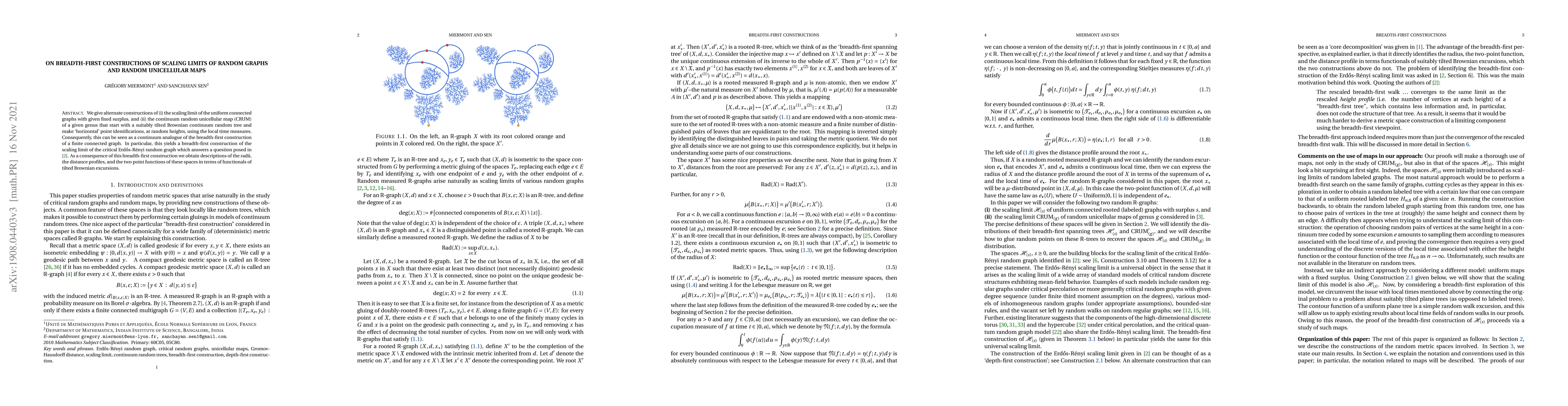 The research employs breadth-first constructions to provide alternate descriptions of scaling limits of random graphs and unicellular maps, specifically focusing on uniform connected graphs with a fixed surplus and continuum random unicellular maps of a given genus.