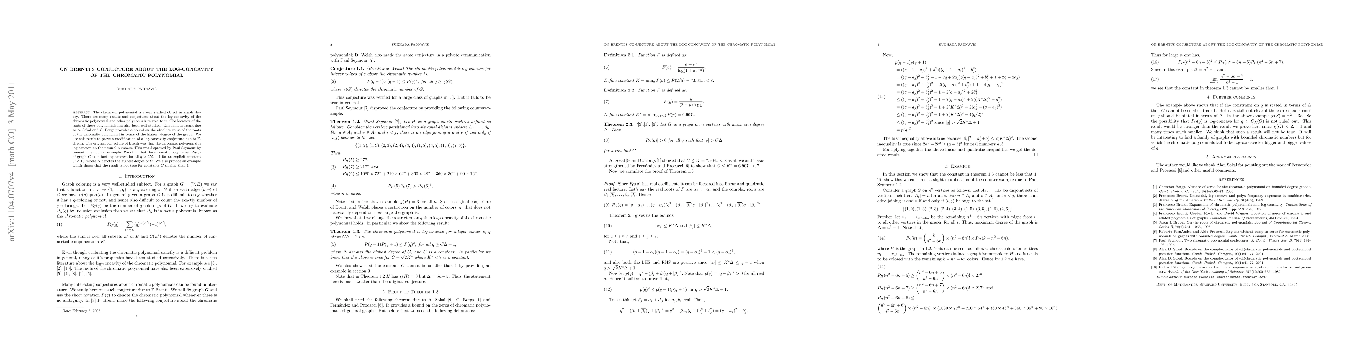 This paper proves a modified version of Brenti's conjecture on the log-concavity of the chromatic polynomial, showing that $P_G(q)$ is log-concave for $q > C\Delta + 1$ where $\Delta$ is the graph's maximum degree and $C < 10$. It also demonstrates that smaller constants for $C$ fail the conjecture.