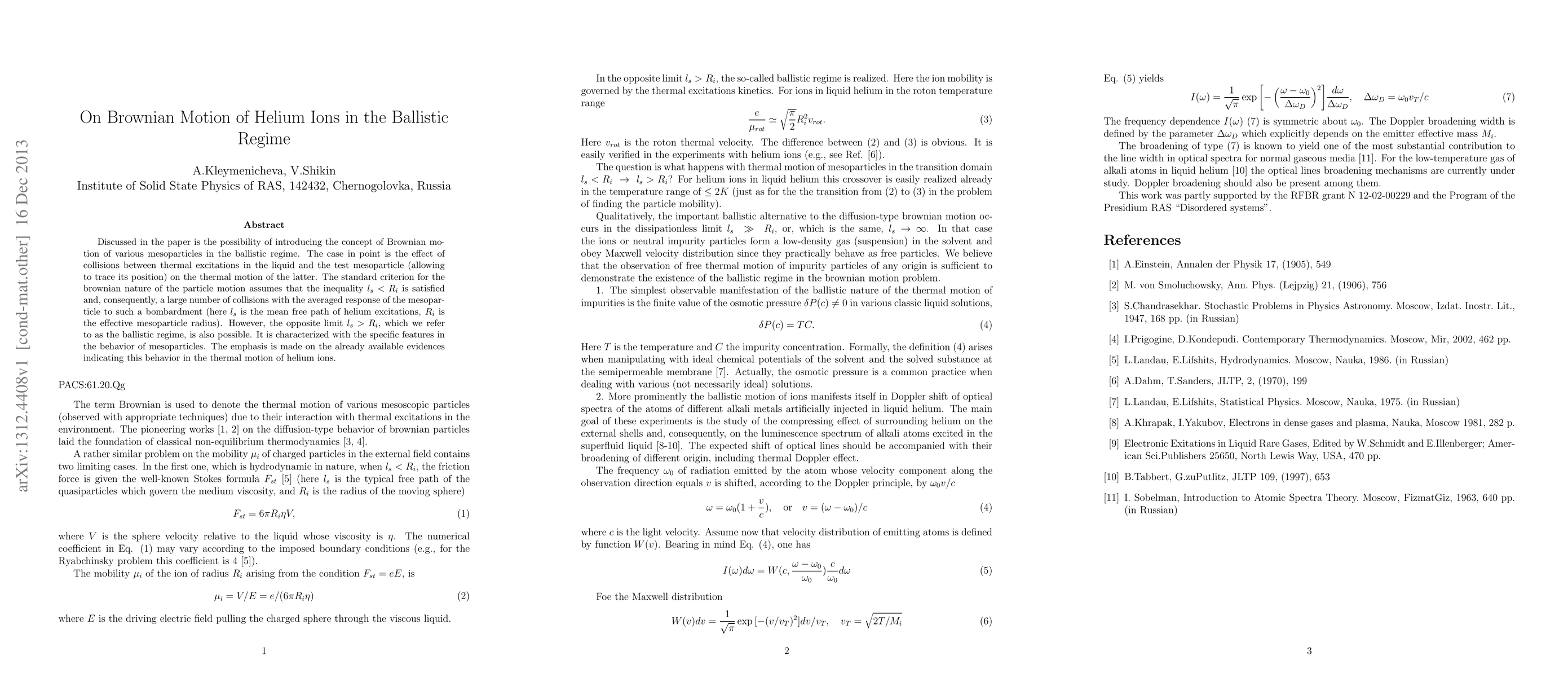 Brownian motion of various mesoparticles in the ballistic regime. The case in