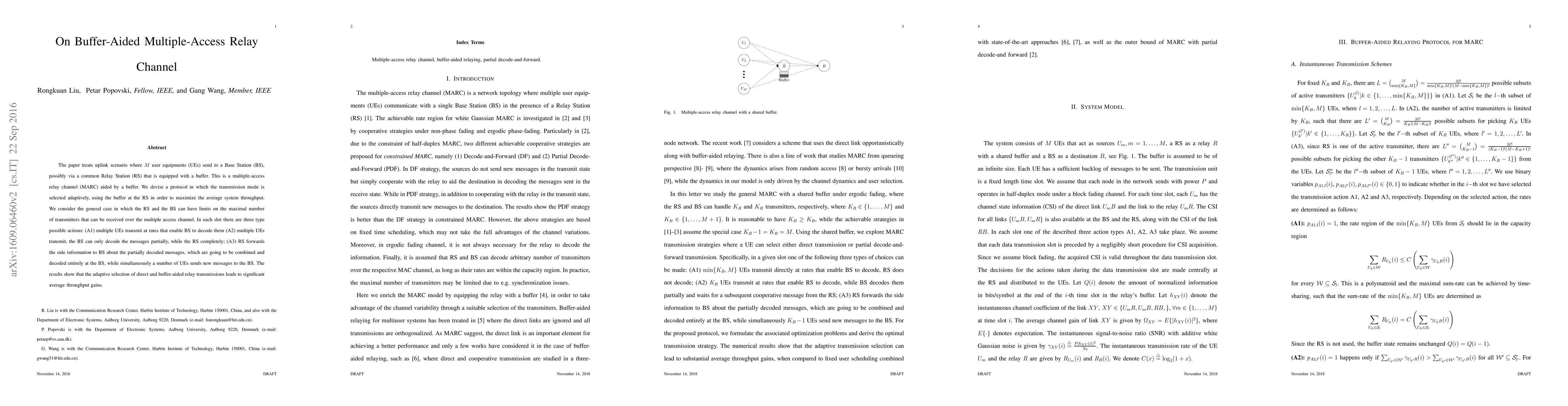 The paper proposes a protocol for a buffer-aided multiple-access relay channel to maximize the average system throughput by adaptively selecting transmission modes based on the relay station's buffer. The adaptive approach leads to significant throughput gains over direct transmissions.