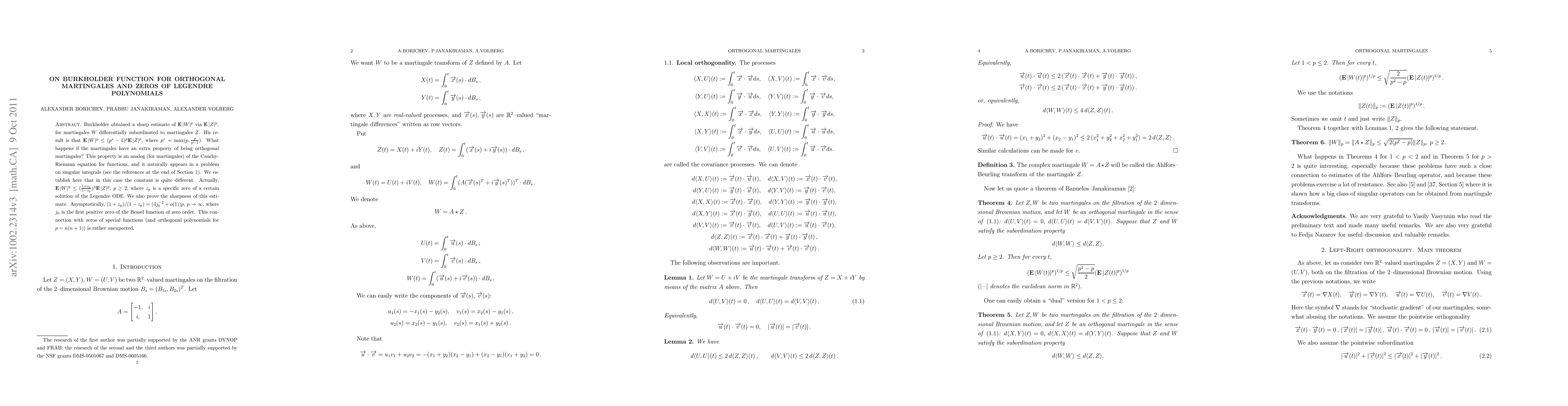 This paper investigates Burkholder's inequality for orthogonal martingales, showing that the constant in the inequality changes when the martingales are orthogonal. The new constant is linked to specific zeros of Legendre polynomials, revealing an unexpected connection between martingale theory and special functions.