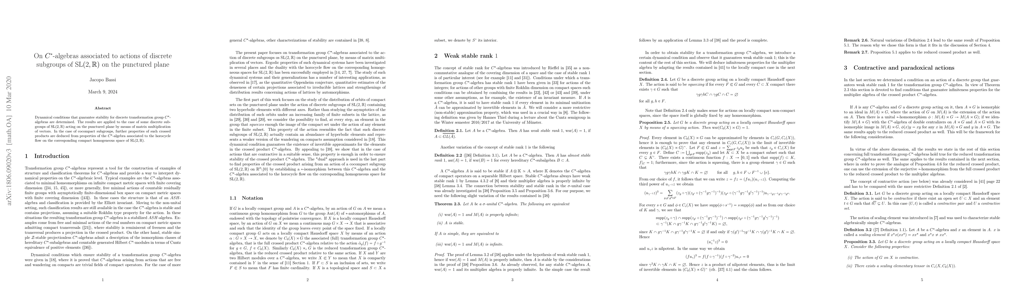Dynamical conditions that guarantee stability for discrete transformation group $C^*$-algebras are determined. The results are applied to the case of some discrete subgroups of $SL(2,\mathbb{R})$ acting on the plane with the origin removed by means of matrix multiplication of vectors. In the case of cocompact subgroups, further properties of such crossed products are deduced from properties of the $C^*$-algebra associated to the horocycle flow on the corresponding compact homogeneous space of $SL(2,\mathbb{R})$.