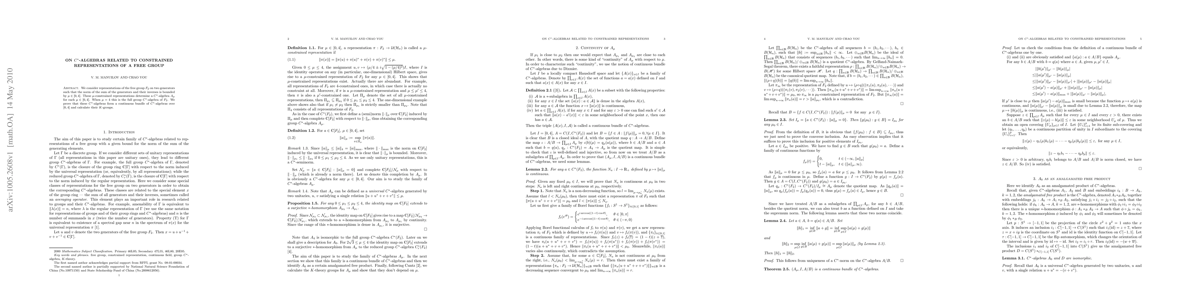 We consider representations of the free group $F_2$ on two generators such that the norm of the sum of the generators and their inverses is bounded by $\mu\in[0,4]$. These $\mu$-constrained representations determine a C*-algebra $A_{\mu}$ for each $\mu\in[0,4]$. We prove that these C*-algebras form a continuous bundle of C*-algebras over $[0,4]$ and calculate their K-groups.