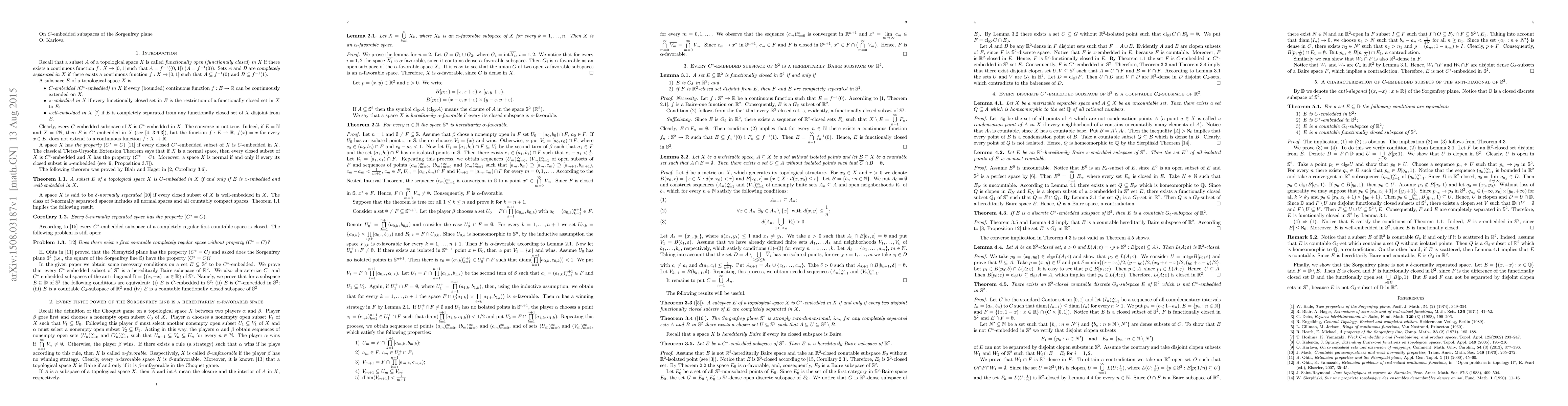 We prove that every $C^*$-embedded subset of $\ss$ is a hereditarily Baire subspace of $\mathbb R^2$. We also show that for a subspace $E\subseteq\{(x,-x):x\in\mathbb R\}$ of the Sorgenfrey plane $\mathbb S^2$ the following conditions are equivalent: (i) $E$ is $C$-embedded in $\mathbb S^2$; (ii) $E$ is $C^*$-embedded in $\mathbb S^2$; (iii) $E$ is a countable $G_\delta$-subspace of $\mathbb R^2$ and (iv) $E$ is a countable functionally closed subspace of $\mathbb S^2$.