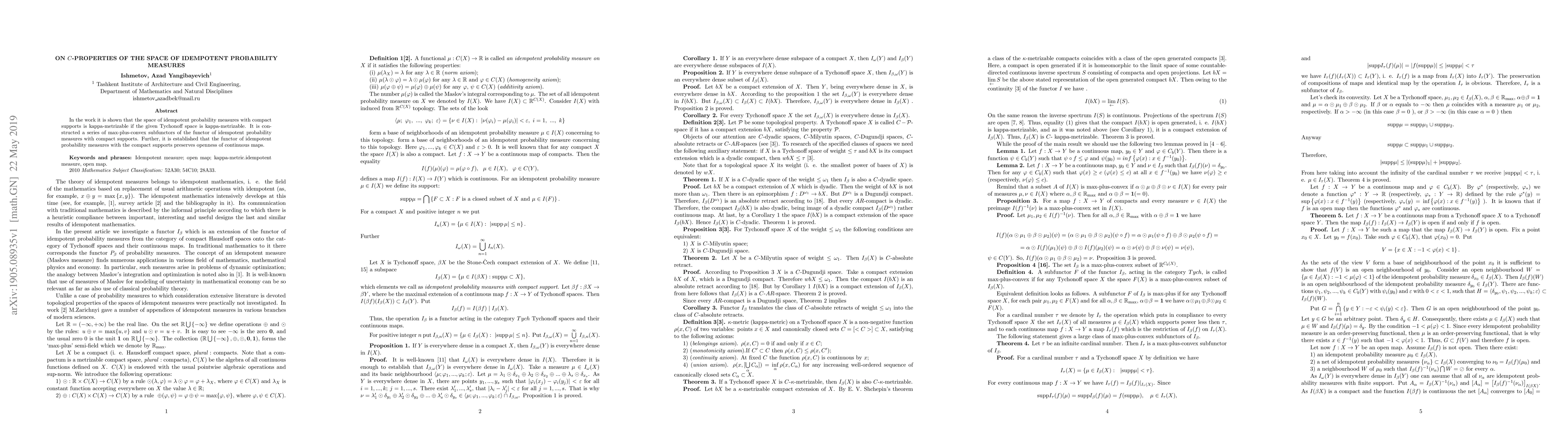 The paper demonstrates that the space of idempotent probability measures with compact supports is kappa-metrizable if the underlying Tychonoff space is kappa-metrizable, and constructs a series of max-plus-convex subfunctors for this functor while proving its preservation of openness under continuous maps.