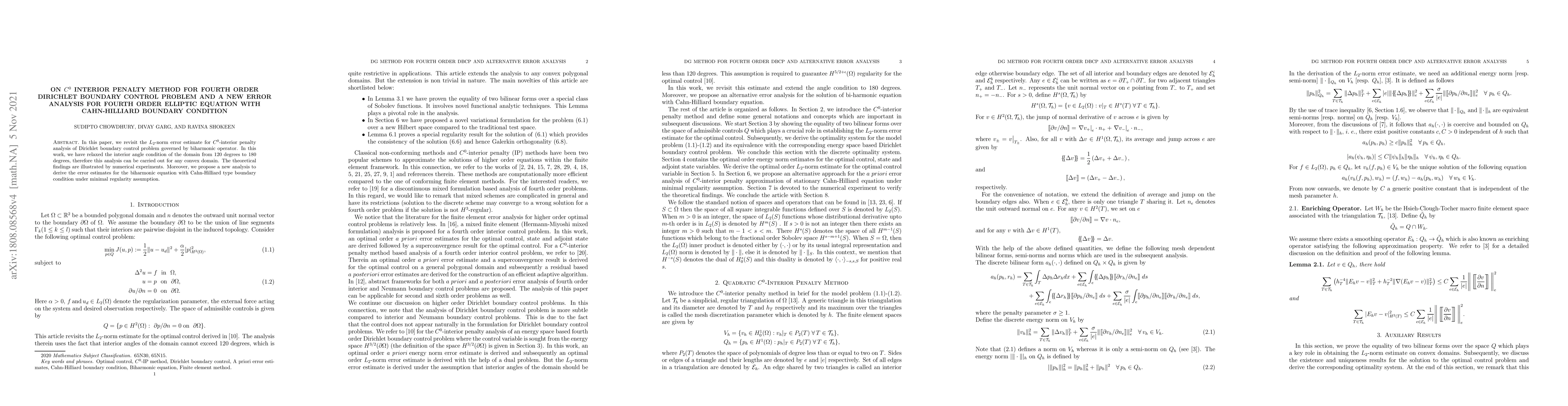 This paper revisits the $L_2$-norm error estimate for $C^0$-interior penalty methods applied to a Dirichlet boundary control problem governed by the biharmonic operator, relaxing the interior angle condition to allow analysis for any convex domain. Additionally, it introduces a new error analysis for the biharmonic equation with Cahn-Hilliard boundary conditions under minimal regularity assumptions, supported by numerical experiments.