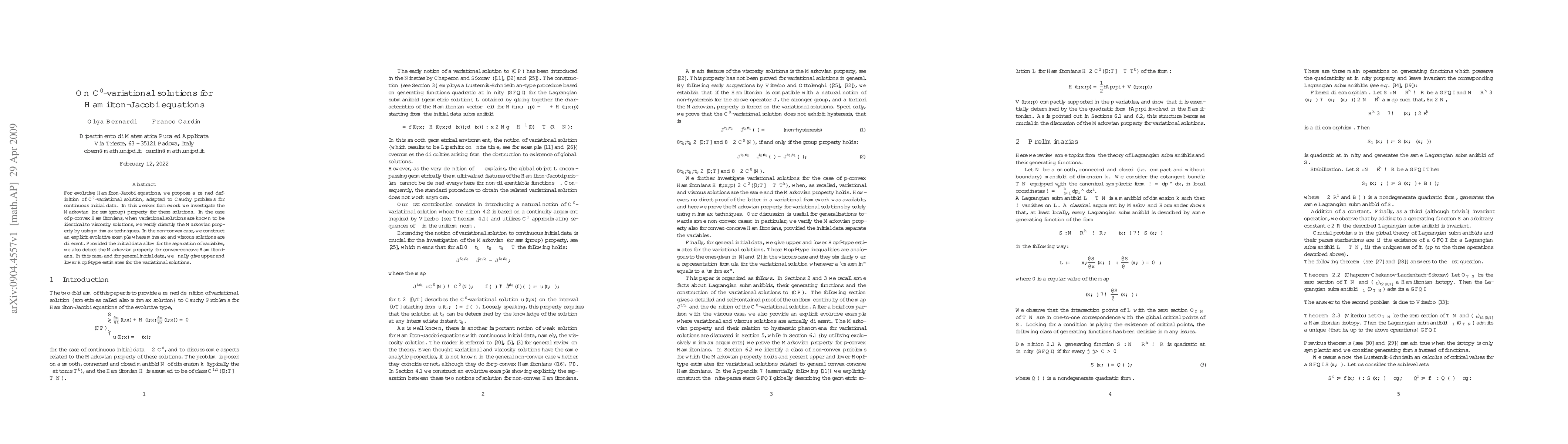 This paper refines the definition of C^0-variational solutions for Hamilton-Jacobi equations, exploring the Markovian property in both convex and non-convex cases. It verifies the Markovian property for p-convex Hamiltonians using minmax techniques and constructs an explicit example showing differences between minmax and viscous solutions in non-convex cases.