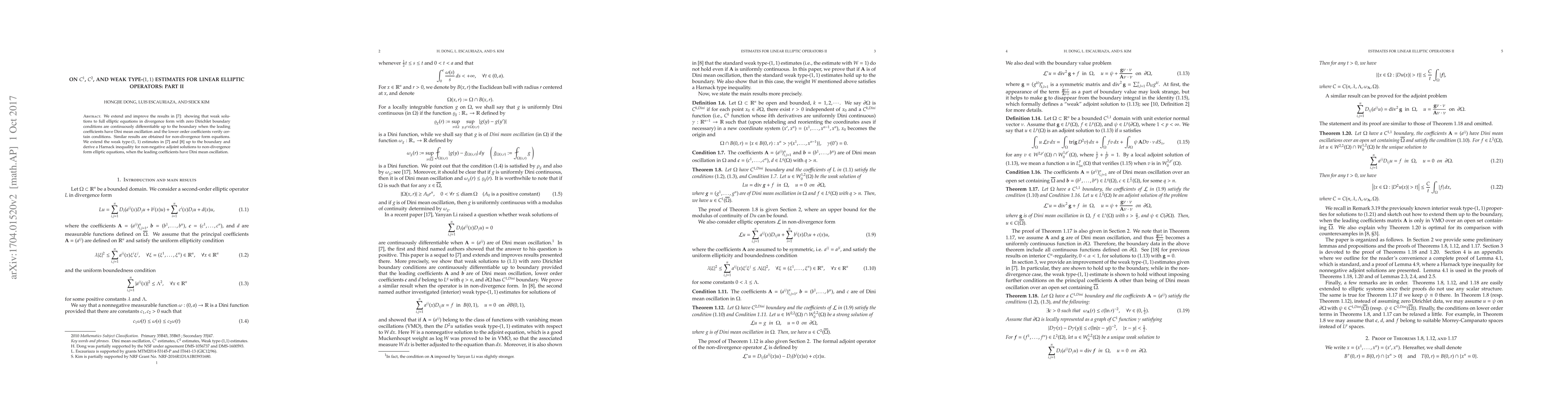 We extend and improve the results in \cite{DK16}: showing that weak solutions to full elliptic equations in divergence form with zero Dirichlet boundary conditions are continuously differentiable up to the boundary when the leading coefficients have Dini mean oscillation and the lower order coefficients verify certain conditions. Similar results are obtained for non-divergence form equations. We extend the weak type-(1, 1) estimates in \cite{DK16} and \cite{Es94} up to the boundary and derive a Harnack inequality for non-negative adjoint solutions to non-divergence form elliptic equations, when the leading coefficients have Dini mean oscillation.