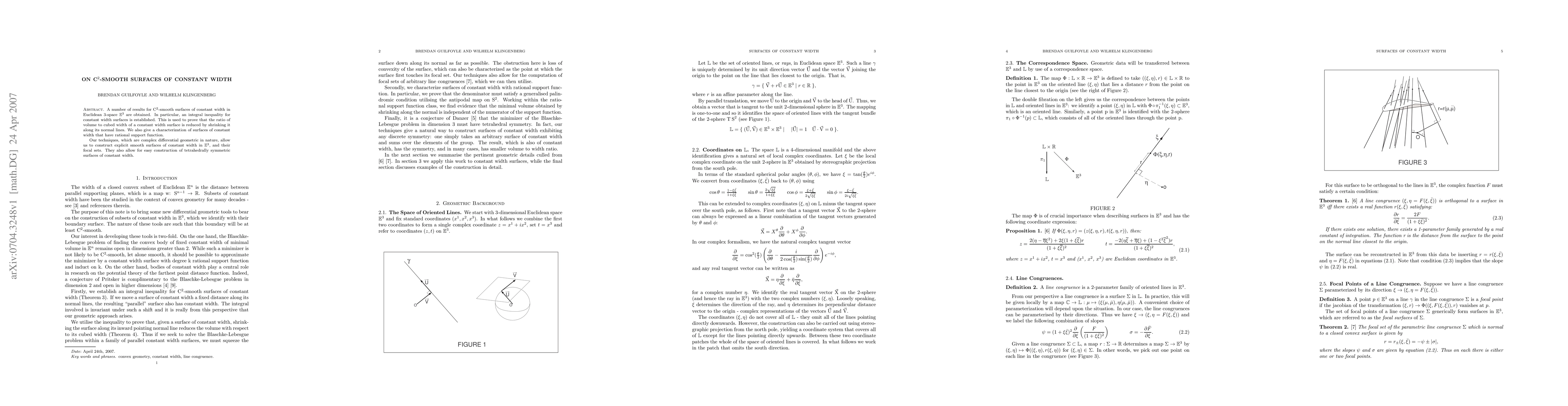 Researchers developed techniques to create explicit smooth surfaces of constant width in 3D space, establishing an integral inequality for these surfaces and providing a characterization of those with rational support functions.