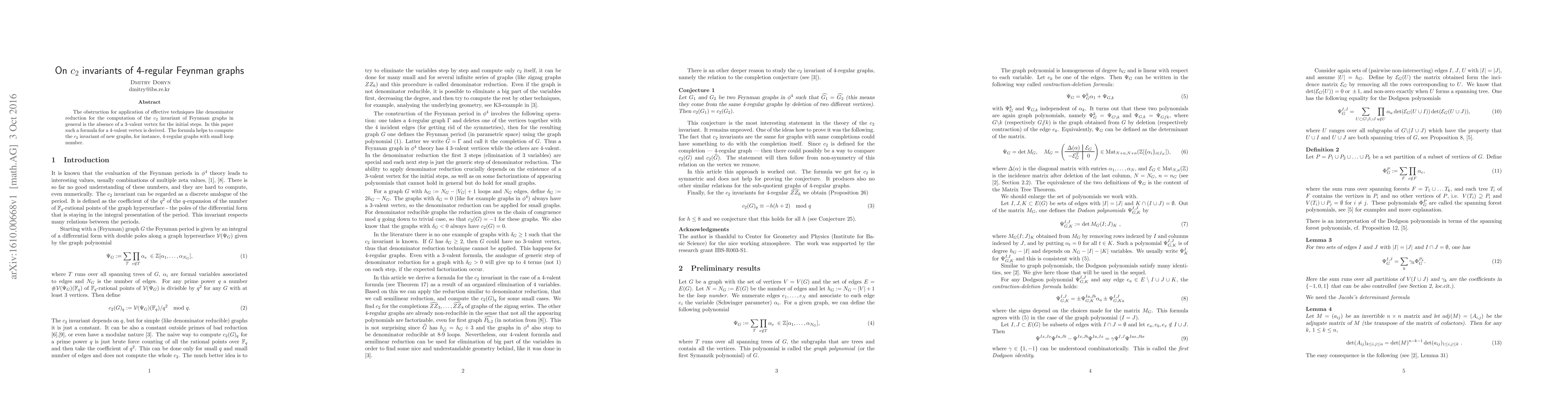 This paper derives a formula for the $c_2$ invariant applicable to 4-regular Feynman graphs, overcoming the limitation of existing techniques that require 3-valent vertices. This advancement enables the computation of $c_2$ invariants for previously inaccessible 4-regular graphs with minimal loop numbers.