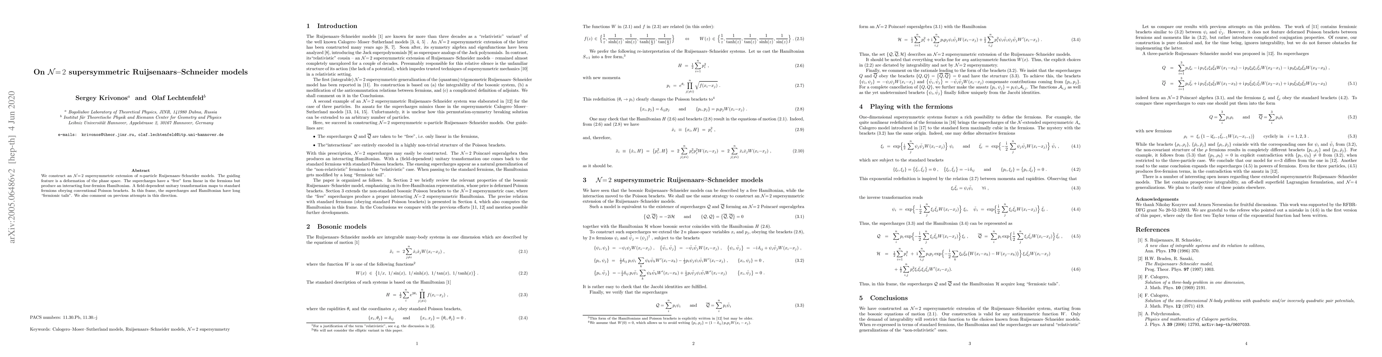 This paper constructs an ${\cal N}{=}\,2$ supersymmetric extension of $n$-particle Ruijsenaars-Schneider models, featuring a deformed phase space and a four-fermion Hamiltonian derived from linear supercharges. The supercharges and Hamiltonian exhibit long "fermionic tails" after a field-dependent unitary transformation.
