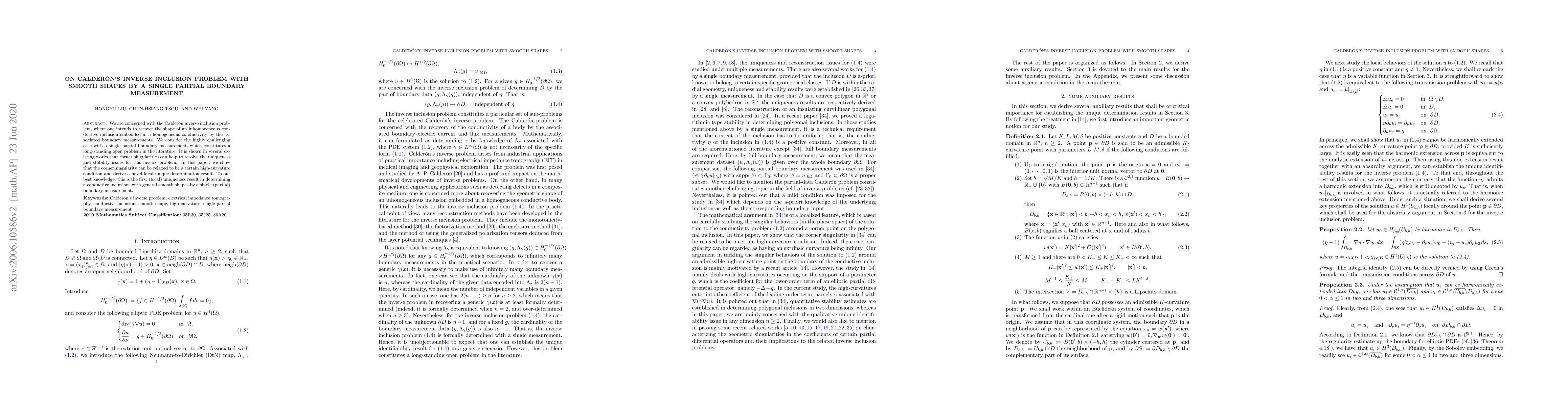 This paper addresses the Calder\'on inverse inclusion problem in determining the shape of an inhomogeneous conductive inclusion using a single partial boundary measurement, demonstrating a novel local uniqueness result by relaxing the corner singularity condition to a high-curvature condition. To the authors' knowledge, this is the first such uniqueness result for smooth shapes.