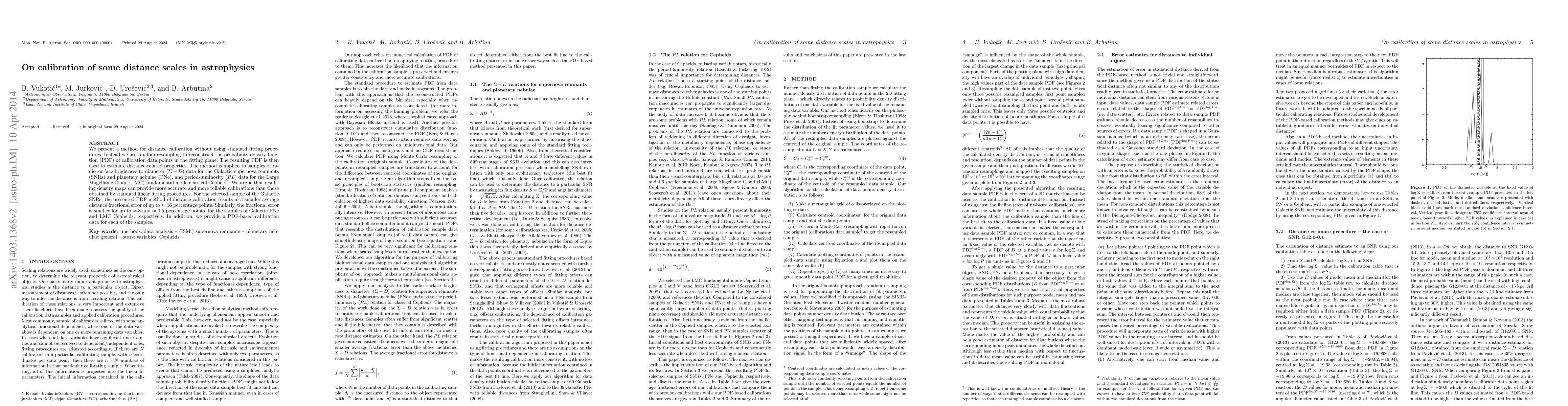 We present a method for distance calibration without using standard fitting procedures. Instead we use random resampling to reconstruct the probability density function (PDF) of calibration data points in the fitting plane. The resulting PDF is then used to estimate distance-related properties. The method is applied to samples of radio surface brightness to diameter (\Sigma-D) data for the Galactic supernova remnants (SNRs) and planetary nebulae (PNe), and period-luminosity (PL) data for the Large Magellanic Cloud (LMC) fundamental mode classical Cepheids. We argue that resulting density maps can provide more accurate and more reliable calibrations than those obtained by standard linear fitting procedures. For the selected sample of the Galactic SNRs, the presented PDF method of distance calibration results in a smaller average distance fractional error of up to $\approx 16$ percentage points. Similarly, the fractional error is smaller for up to $\approx 8$ and $\approx 0.5$ percentage points, for the samples of Galactic PNe and LMC Cepheids, respectively. In addition, we provide a PDF-based calibration data for each of the samples.
