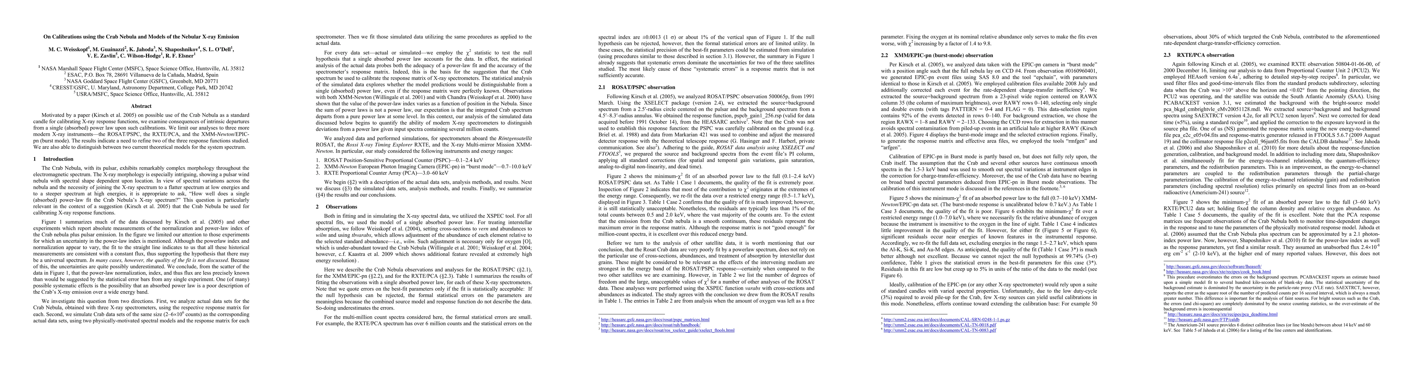 Motivated by a paper (Kirsch et al. 2005) on possible use of the Crab Nebula as a standard candle for calibrating X-ray response functions, we examine consequences of intrinsic departures from a single (absorbed) power law upon such calibrations. We limit our analyses to three more modern X-ray instruments-the ROSAT/PSPC, the RXTE/PCA, and the XMM-Newton/EPIC-pn (burst mode). The results indicate a need to refine two of the three response functions studied. We are also able to distinguish between two current theoretical models for the system spectrum.