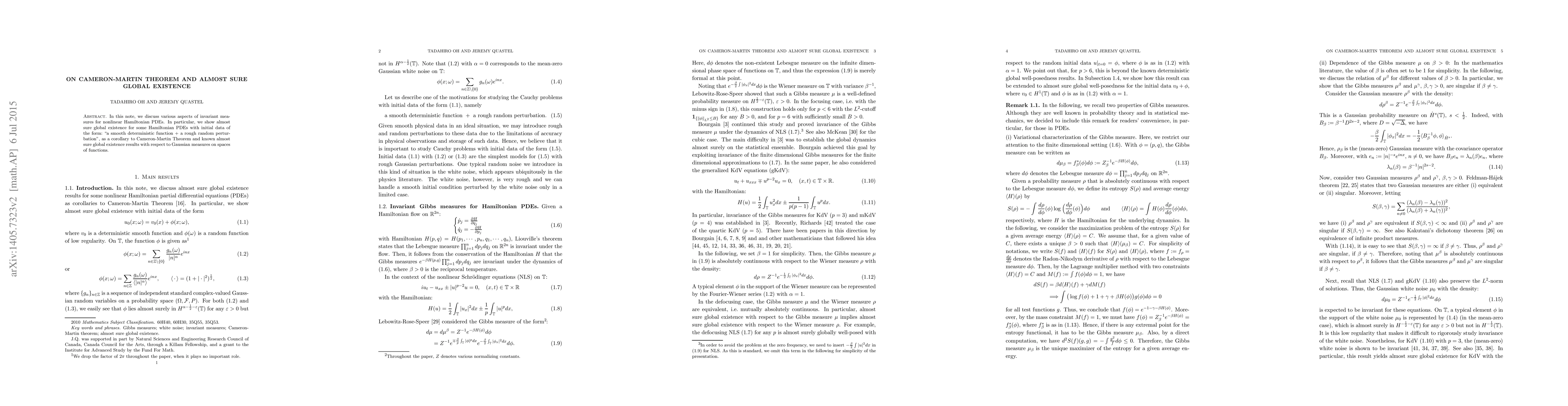 This paper explores invariant measures for nonlinear Hamiltonian PDEs, demonstrating almost sure global existence for certain PDEs with initial data combining smooth deterministic functions and rough random perturbations, leveraging the Cameron-Martin Theorem and established results on Gaussian measures.