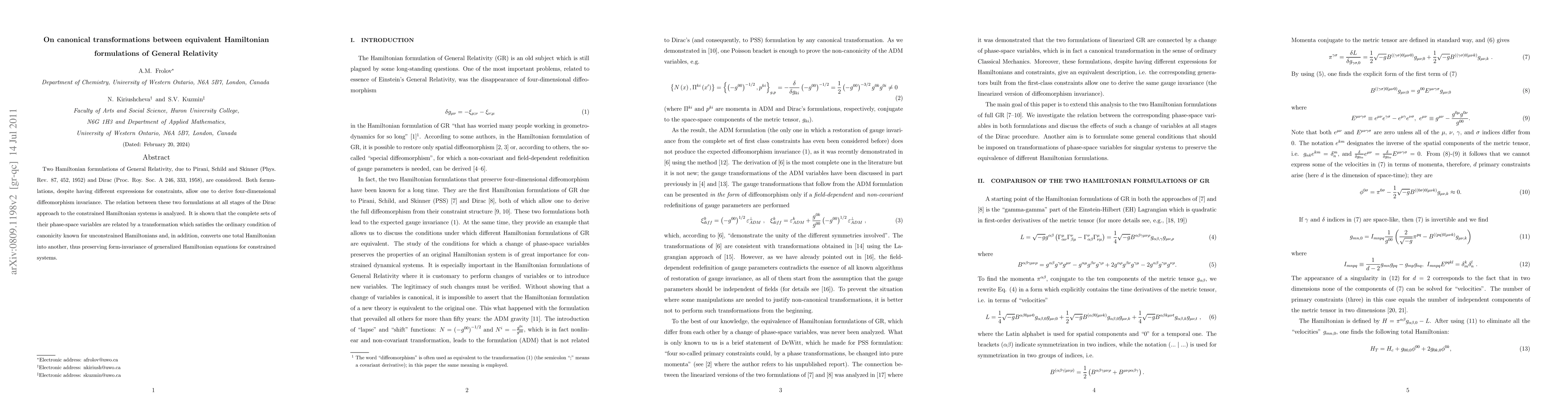 This paper investigates the canonical transformations between two Hamiltonian formulations of General Relativity by Pirani, Schild, and Skinner and Dirac, demonstrating that despite differences in constraints, both formulations maintain four-dimensional diffeomorphism invariance. The study reveals a transformation that maintains canonicity and preserves the form-invariance of Hamiltonian equations for constrained systems.