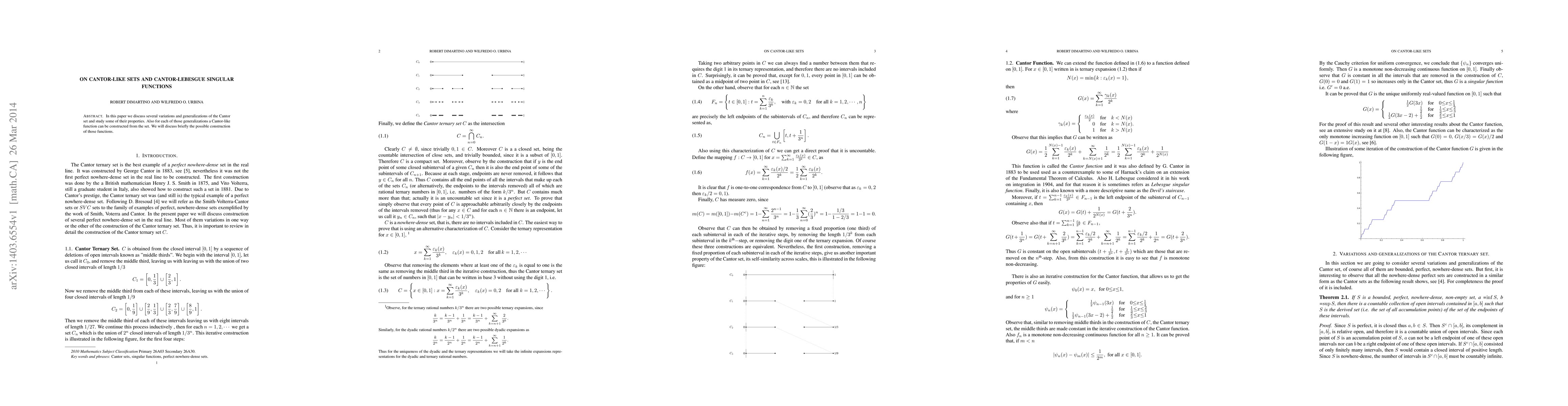 This paper explores variations and generalizations of the Cantor set and examines their properties, while also constructing Cantor-like functions from each generalized set. The construction of these functions is briefly discussed.