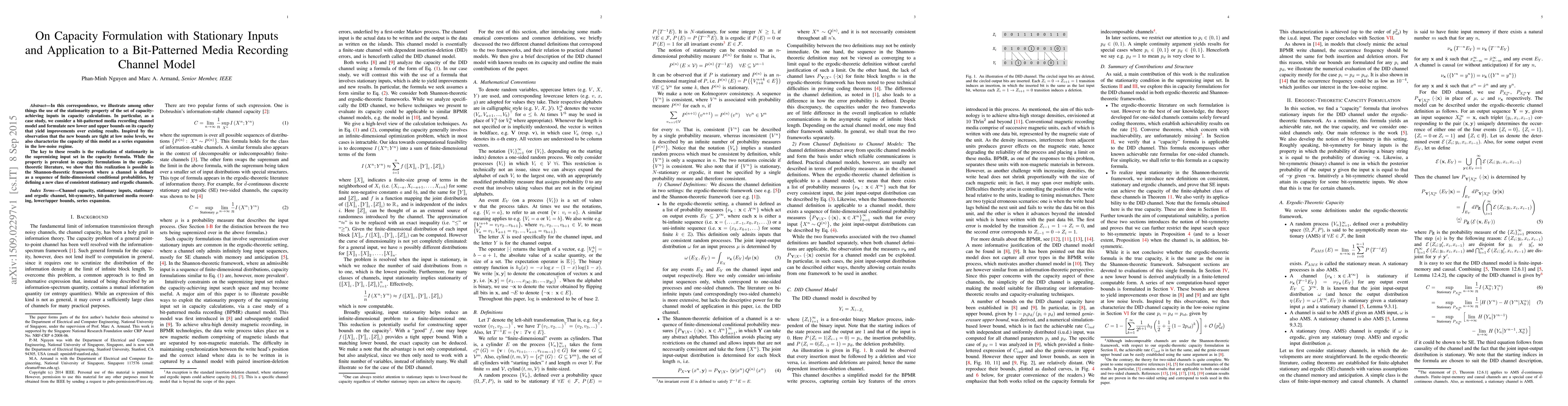 In this correspondence, we illustrate among other things the use of the stationarity property of the set of capacity-achieving inputs in capacity calculations. In particular, as a case study, we consider a bit-patterned media recording channel model and formulate new lower and upper bounds on its capacity that yield improvements over existing results. Inspired by the observation that the new bounds are tight at low noise levels, we also characterize the capacity of this model as a series expansion in the low-noise regime. The key to these results is the realization of stationarity in the supremizing input set in the capacity formula. While the property is prevalent in capacity formulations in the ergodic-theoretic literature, we show that this realization is possible in the Shannon-theoretic framework where a channel is defined as a sequence of finite-dimensional conditional probabilities, by defining a new class of consistent stationary and ergodic channels.