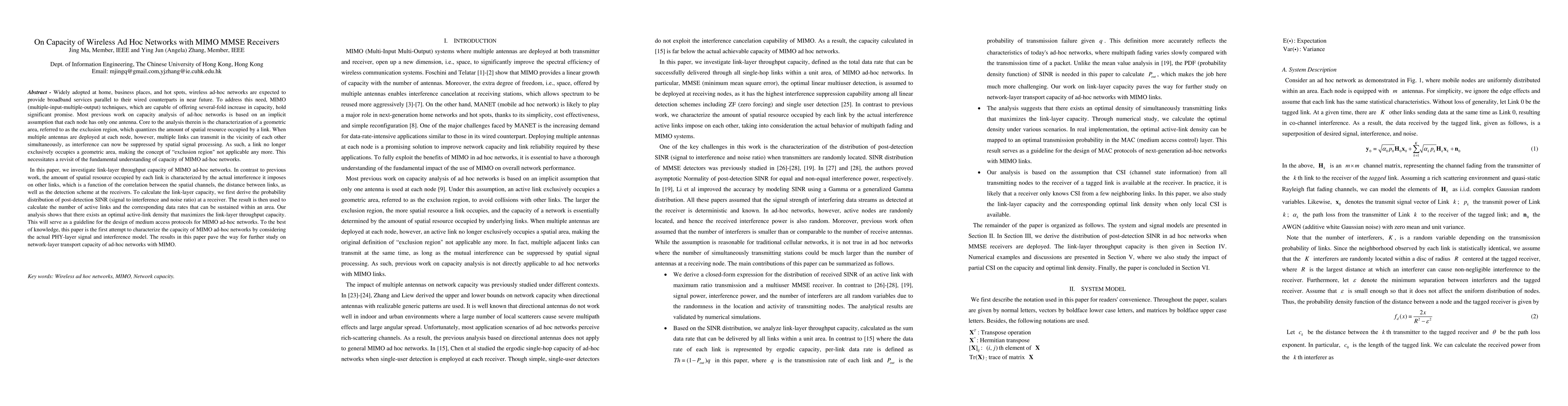 This paper investigates the link-layer throughput capacity of MIMO ad-hoc networks, focusing on how multiple antennas at each node can enable simultaneous transmissions by suppressing interference. It characterizes spatial resource usage based on actual interference rather than an exclusion region, providing a new approach to capacity analysis.