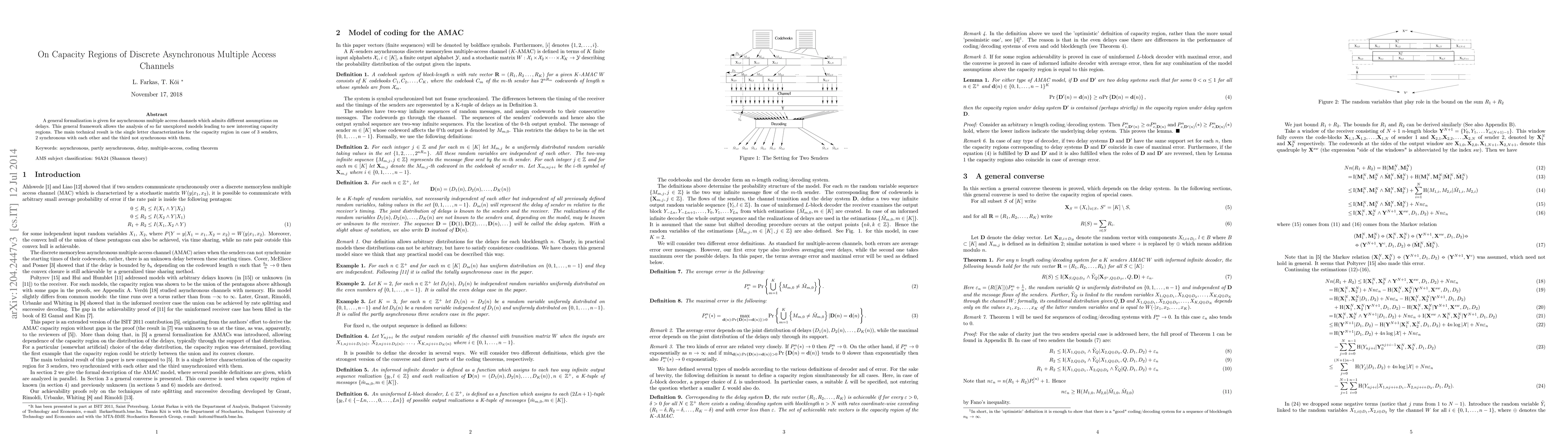 This paper formalizes asynchronous multiple access channels with varying delay assumptions, exploring new capacity regions. It provides a single-letter characterization for the capacity region in a model with three senders, where two are synchronous and one is not.