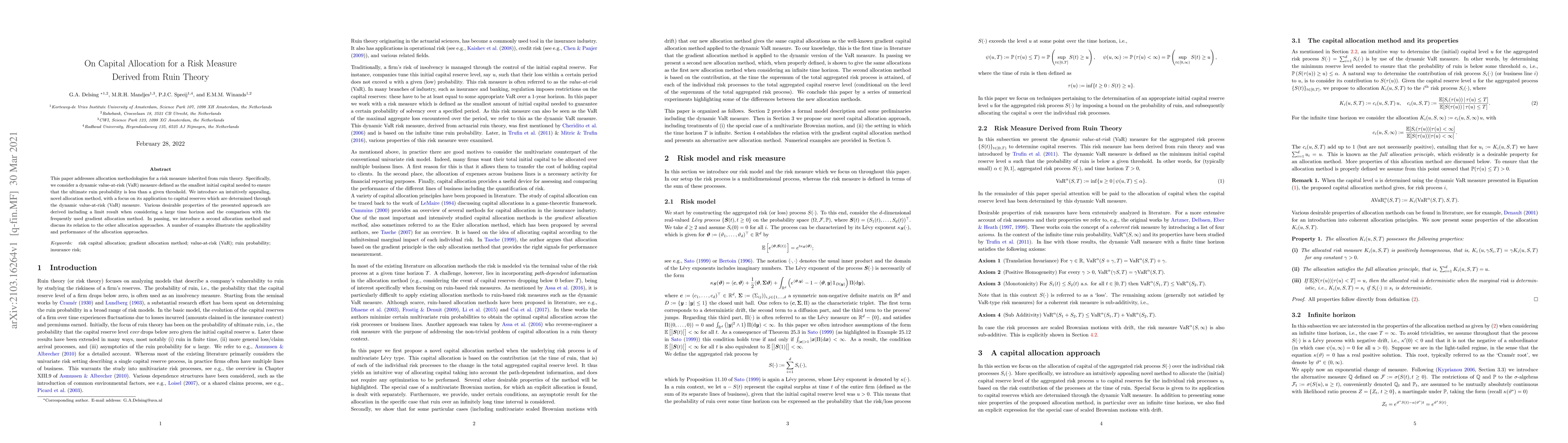 This paper proposes a novel allocation method for a risk measure derived from ruin theory, focusing on dynamic value-at-risk (VaR) to determine capital reserves. It compares the new method with the gradient allocation method, illustrating its properties and performance through examples.