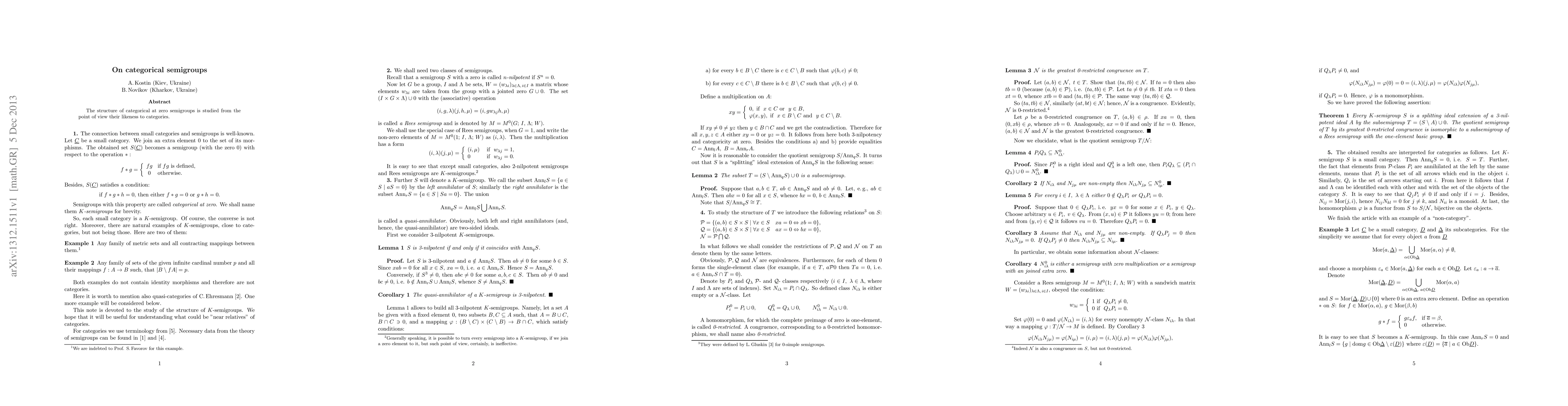 Summary: This paper investigates the structural characteristics of categorical semigroups at zero, exploring their similarities to categories and how they function within the realm of semigroup theory.