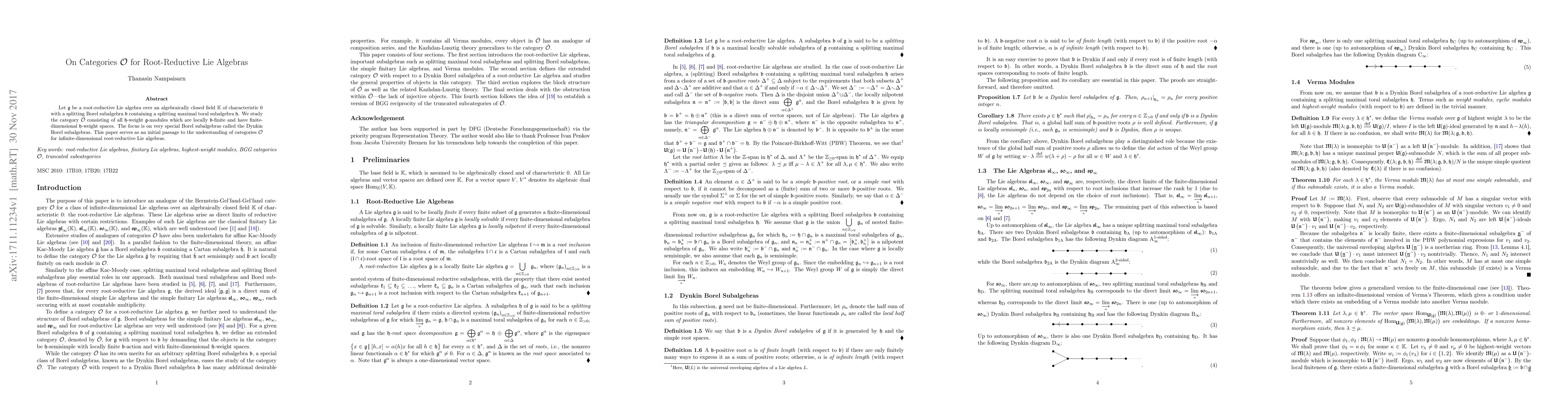 This paper explores the category $\bar{\mathcal{O}}$ of $\mathfrak{h}$-weight $\mathfrak{g}$-modules for root-reductive Lie algebras, focusing on Dynkin Borel subalgebras and their implications for infinite-dimensional root-reductive Lie algebras. It lays the groundwork for understanding categories $\mathcal{O}$ in this context.