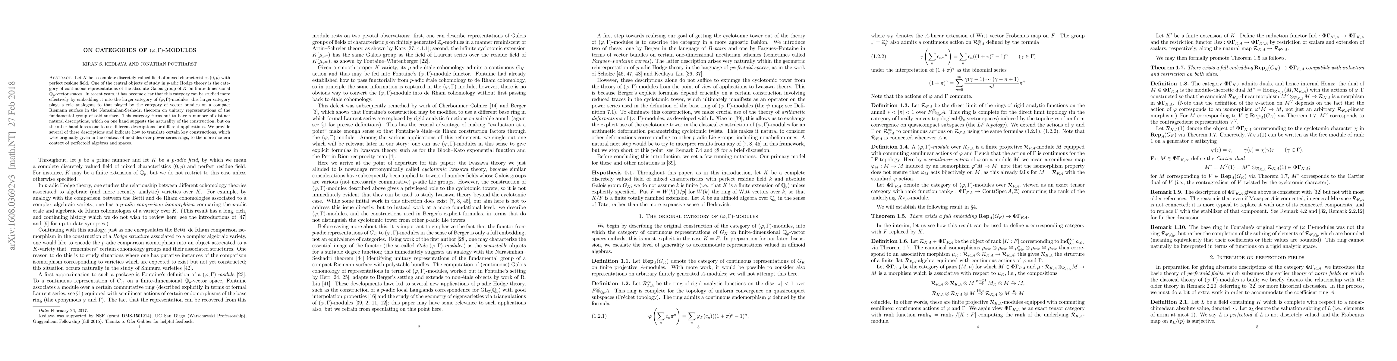 Let K be a complete discretely valued field of mixed characteristics (0, p) with perfect residue field. One of the central objects of study in p-adic Hodge theory is the category of continuous representations of the absolute Galois group of K on finite-dimensional Qp-vector spaces. In recent years, it has become clear that this category can be studied more effectively by embedding it into the larger category of (phi, Gamma)-modules; this larger category plays a role analogous to that played by the category of vector bundles on a compact Riemann surface in the Narasimhan-Seshadri theorem on unitary representations of the fundamental group of said surface. This category turns out to have a number of distinct natural descriptions, which on one hand suggests the naturality of the construction, but on the other hand forces one to use different descriptions for different applications. We provide several of these descriptions and indicate how to translate certain key constructions, which were originally given in the context of modules over power series rings, to the more modern context of perfectoid algebras and spaces.