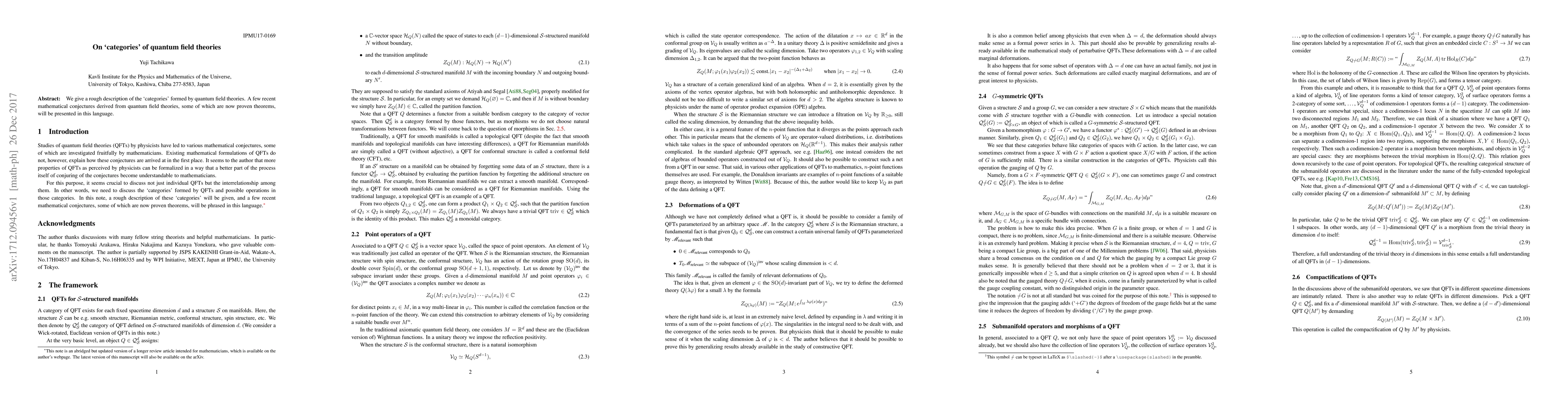This paper provides an overview of the categorization of quantum field theories and discusses recent mathematical conjectures, some now proven theorems, derived from these theories. The focus is on how these conjectures are framed within the context of quantum field theory categories.