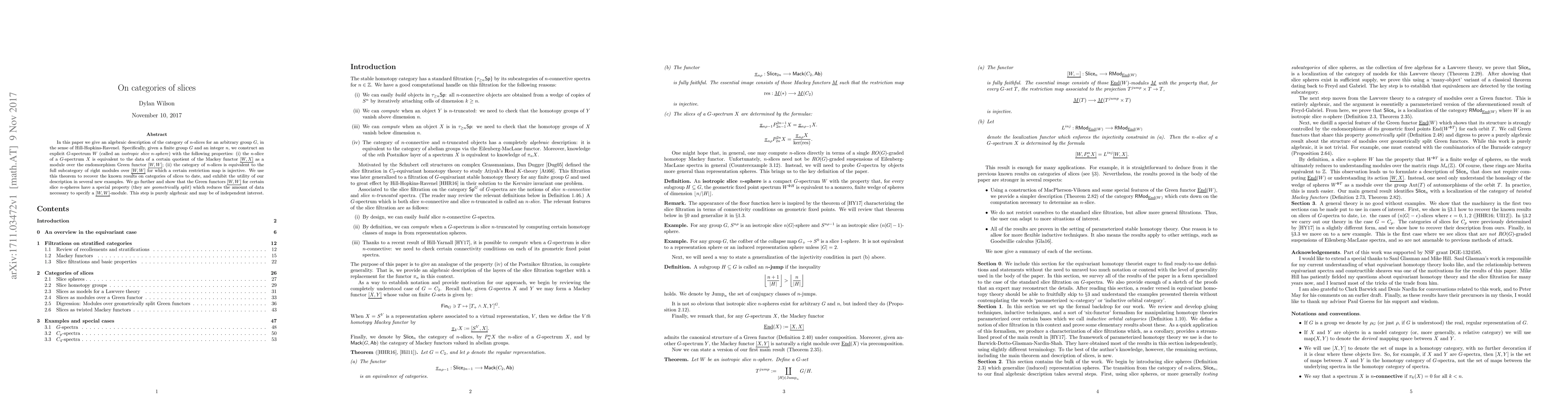 In this paper we give an algebraic description of the category of $n$-slices for an arbitrary group $G$, in the sense of Hill-Hopkins-Ravenel. Specifically, given a finite group $G$ and an integer $n$, we construct an explicit $G$-spectrum $W$ (called an isotropic slice $n$-sphere) with the following properties: (i) the $n$-slice of a $G$-spectrum $X$ is equivalent to the data of a certain quotient of the Mackey functor $\underline{[W,X]}$ as a module over the endomorphism Green functor $\underline{[W,W]}$; (ii) the category of $n$-slices is equivalent to the full subcategory of right modules over $\underline{[W,W]}$ for which certain restriction maps are injective. We use this theorem to recover the known results on categories of slices to date, and exhibit the utility of our description in several new examples. We go further and show that the Green functors $\underline{[W,W]}$ for certain slice $n$-spheres have a special property (they are "geometrically split") which reduces the amount of data necessary to specify a $\underline{[W,W]}$-module. This step is purely algebraic and may be of independent interest.