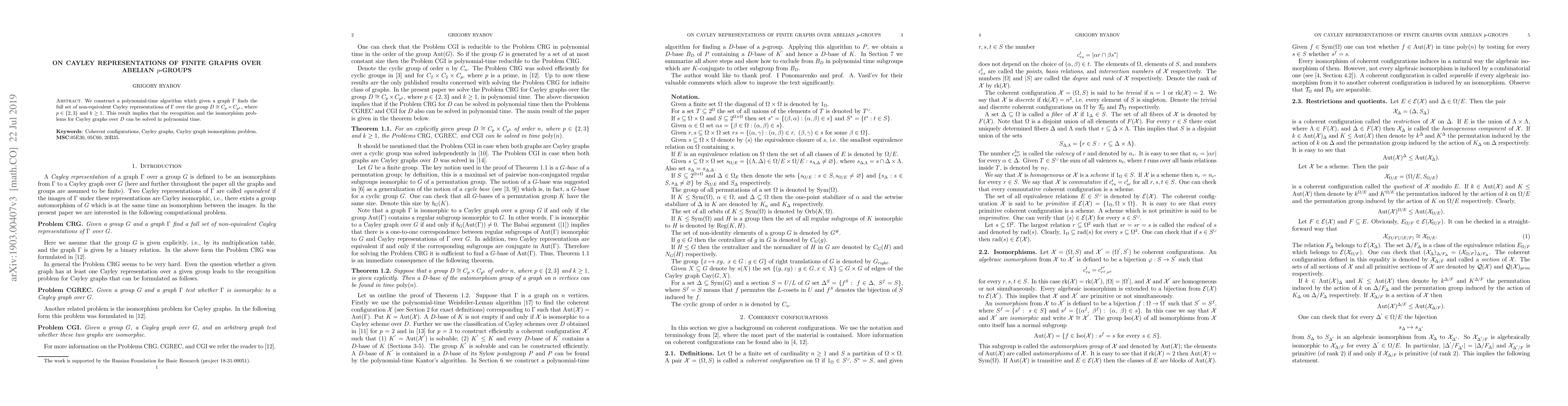 This paper presents a polynomial-time algorithm to identify all non-equivalent Cayley representations of a given graph over the abelian group $D\cong C_p\times C_{p^k}$ for $p\in\{2,3\}$ and $k\geq 1$, resolving recognition and isomorphism problems for these Cayley graphs efficiently.