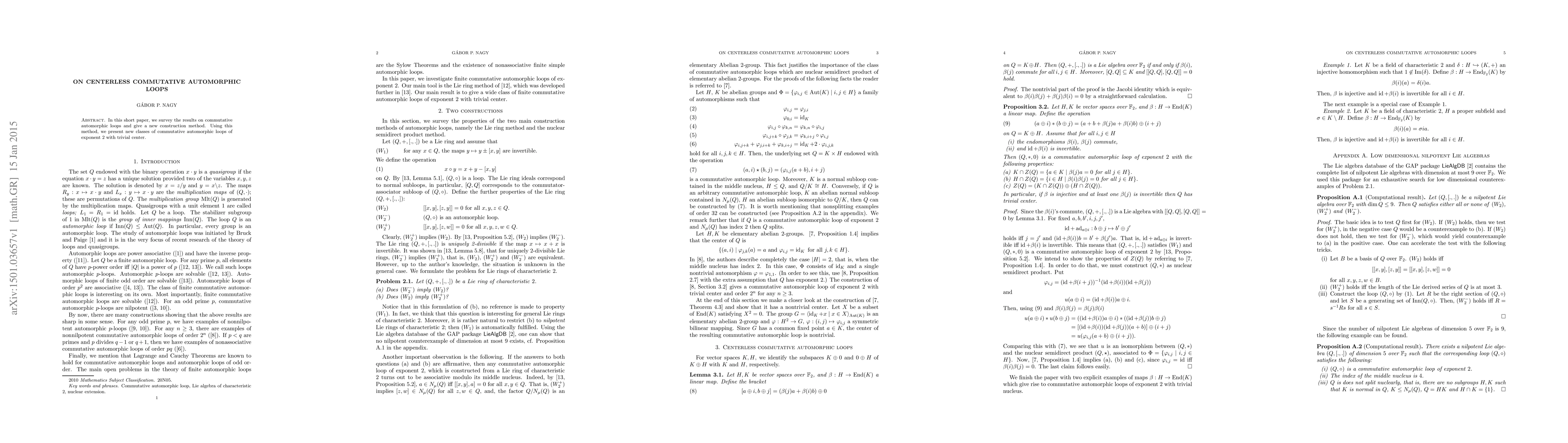 This paper surveys existing results on commutative automorphic loops and introduces a novel construction method to create new classes of such loops characterized by exponent 2 and a trivial center.