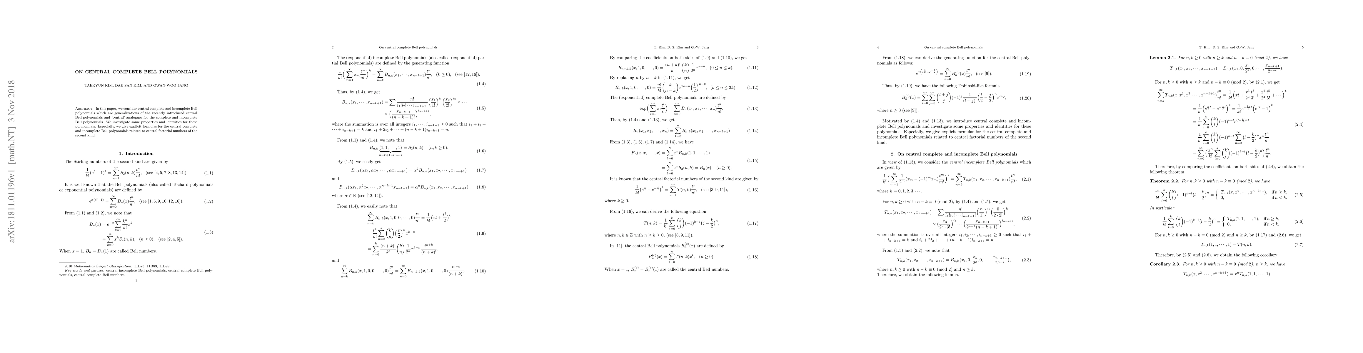 This paper explores the properties and identities of central complete and incomplete Bell polynomials, generalizing recent central Bell polynomials, and provides explicit formulas linked to central factorial numbers of the second kind.