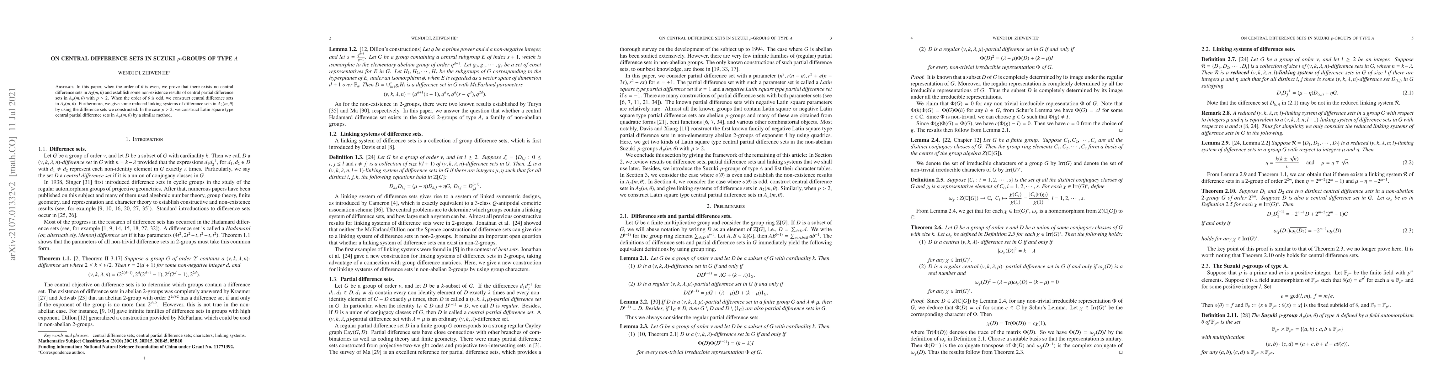 This paper proves the non-existence of central difference sets in Suzuki $p$-groups $A_2(m,\theta)$ when the order of $\theta$ is even and constructs them when $\theta$ is odd. It also introduces reduced linking systems and Latin square type central partial difference sets for $p > 2$ using similar methods.