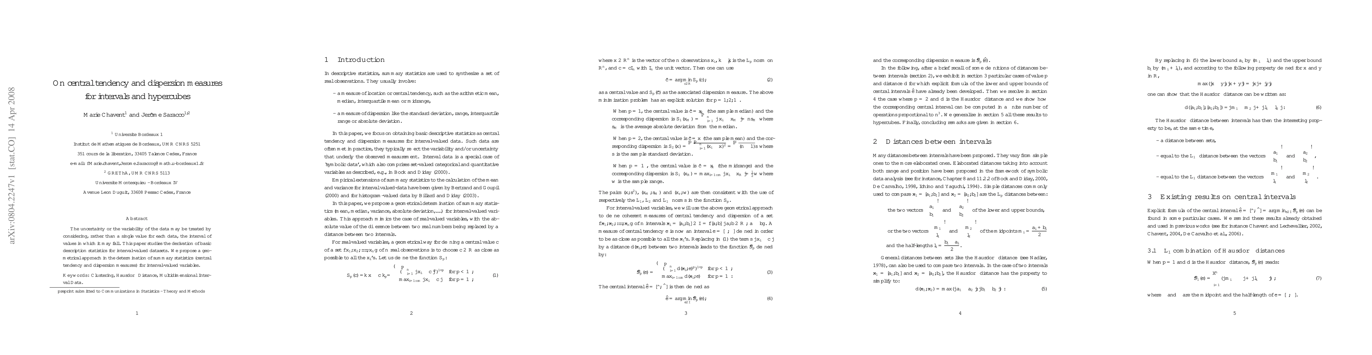 This paper explores the derivation of central tendency and dispersion measures for interval-valued datasets, proposing a geometrical approach to determine summary statistics for interval-valued variables. The focus is on treating data variability through interval representations rather than single values.