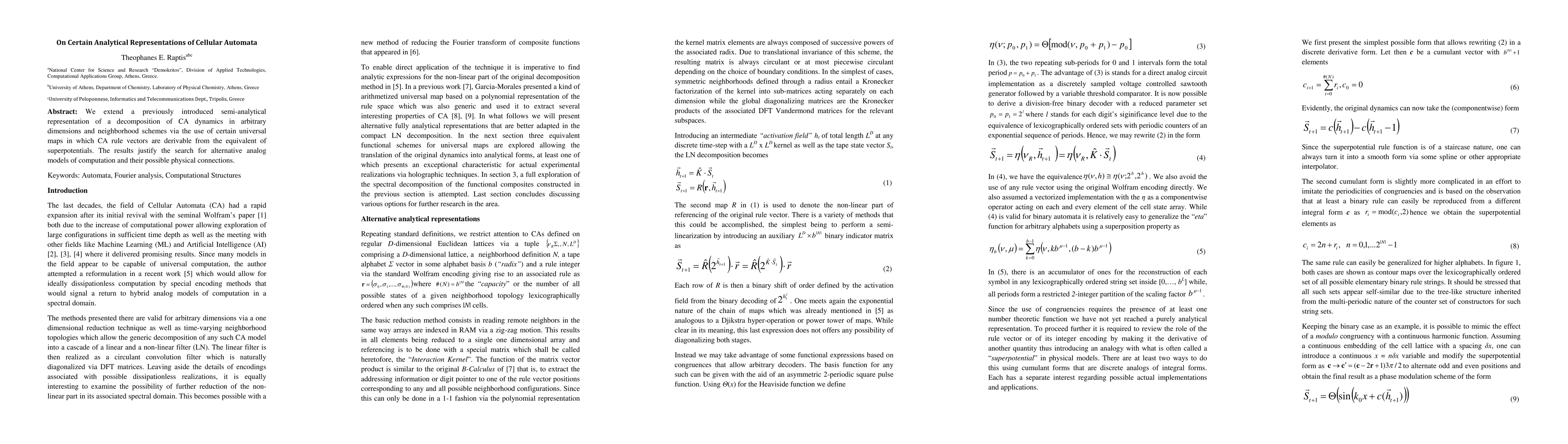 Researchers extend a semi-analytical representation of cellular automata dynamics in arbitrary dimensions, exploring potential connections to alternative models of computation.