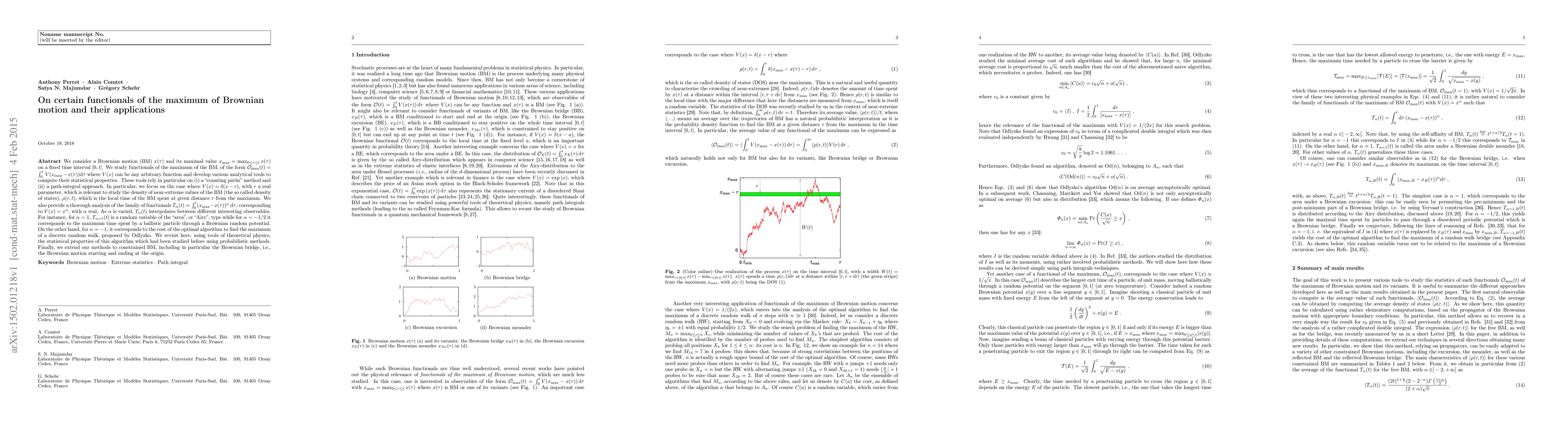 We consider a Brownian motion (BM) $x(\tau)$ and its maximal value $x_{\max} = \max_{0 \leq \tau \leq t} x(\tau)$ on a fixed time interval $[0,t]$. We study functionals of the maximum of the BM, of the form ${\cal O}_{\max}(t)=\int_0^t\, V(x_{\max} - x(\tau)) {\rm d} \tau$ where $V(x)$ can be any arbitrary function and develop various analytical tools to compute their statistical properties. These tools rely in particular on (i) a "counting paths" method and (ii) a path-integral approach. In particular, we focus on the case where $V(x) = \delta(x-r)$, with $r$ a real parameter, which is relevant to study the density of near-extreme values of the BM (the so called density of states), $\rho(r,t)$, which is the local time of the BM spent at given distance $r$ from the maximum. We also provide a thorough analysis of the family of functionals ${T}_{\alpha}(t)=\int_0^t (x_{\max} - x(\tau))^\alpha \, {\rm d}\tau$, corresponding to $V(x) = x^\alpha$, with $\alpha$ real. As $\alpha$ is varied, $T_\alpha(t)$ interpolates between different interesting observables. For instance, for $\alpha =1$, $T_{\alpha = 1}(t)$ is a random variable of the "area", or "Airy", type while for $\alpha=-1/2$ it corresponds to the maximum time spent by a ballistic particle through a Brownian random potential. On the other hand, for $\alpha = -1$, it corresponds to the cost of the optimal algorithm to find the maximum of a discrete random walk, proposed by Odlyzko. We revisit here, using tools of theoretical physics, the statistical properties of this algorithm which had been studied before using probabilistic methods. Finally, we extend our methods to constrained BM, including in particular the Brownian bridge, i.e., the Brownian motion starting and ending at the origin.