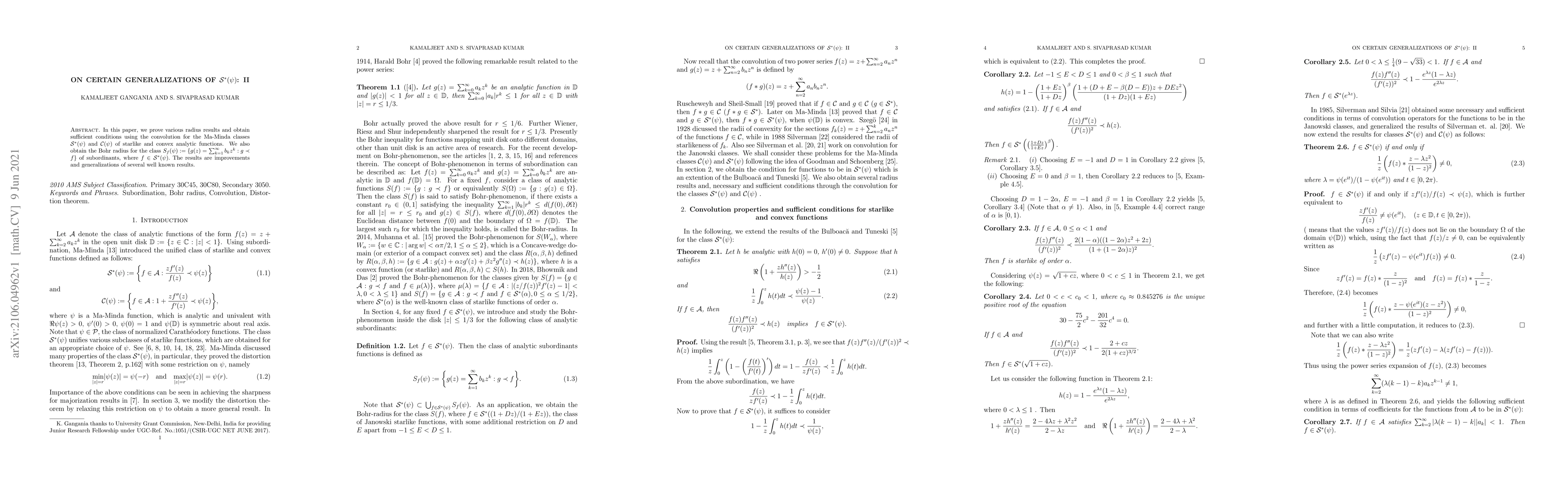 In this paper, we prove various radius results and obtain sufficient conditions using the convolution for the Ma-Minda classes $\mathcal{S}^*(\psi)$ and $\mathcal{C}(\psi)$ of starlike and convex analytic functions. We also obtain the Bohr radius for the class $ S_{f}(\psi):= \{g(z)=\sum_{k=1}^{\infty}b_k z^k : g \prec f \}$ of subordinants, where $f\in \mathcal{S}^*(\psi).$ The results are improvements and generalizations of several well known results.