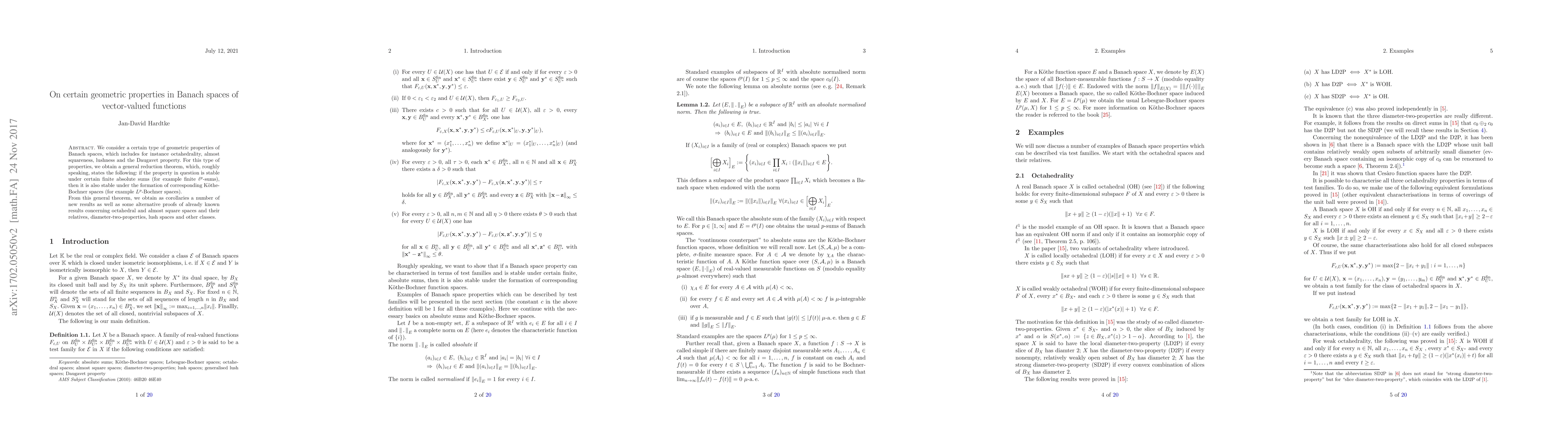 This paper explores geometric properties in Banach spaces of vector-valued functions, including octahedrality and lushness, and establishes a general reduction theorem. The theorem shows stability of these properties under finite absolute sums and corresponding K\"othe-Bochner spaces, leading to new results and alternative proofs for existing properties.
