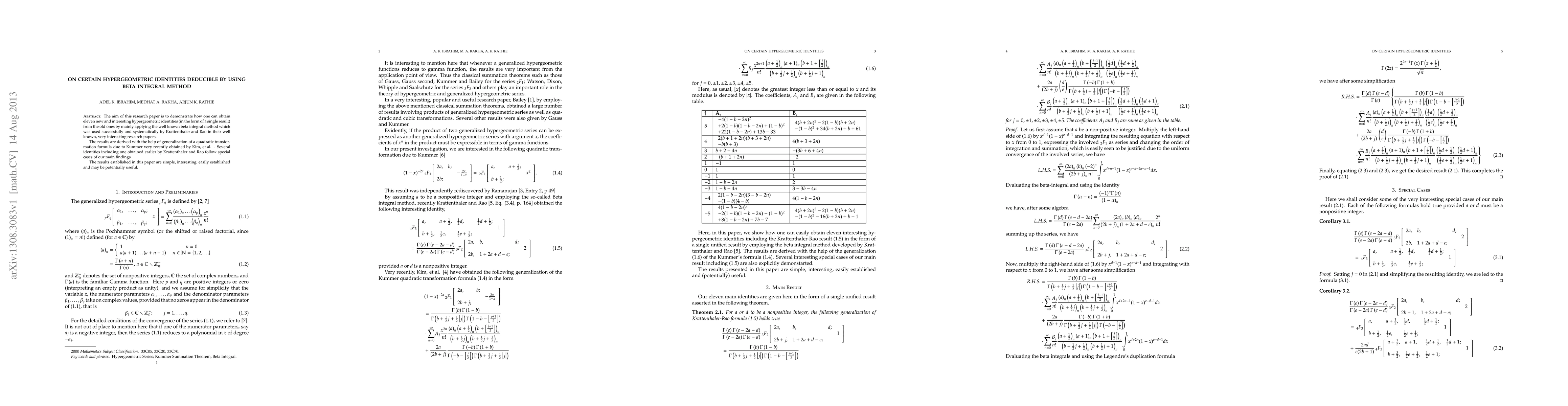 The aim of this research paper is to demonstrate how one can obtain eleven new and interesting hypergeometric identities (in the form of a single result) from the old ones by mainly applying the well known beta integral method which was used successfully and systematically by Krattenthaler and Rao in their well known, very interesting research papers. The results are derived with the help of generalization of a quadratic transformation formula due to Kummer very recently obtained by Kim, et al. . Several identities including one obtained earlier by Krattenthaler and Rao follow special cases of our main findings. The results established in this paper are simple, interesting, easily established and may be potentially useful.