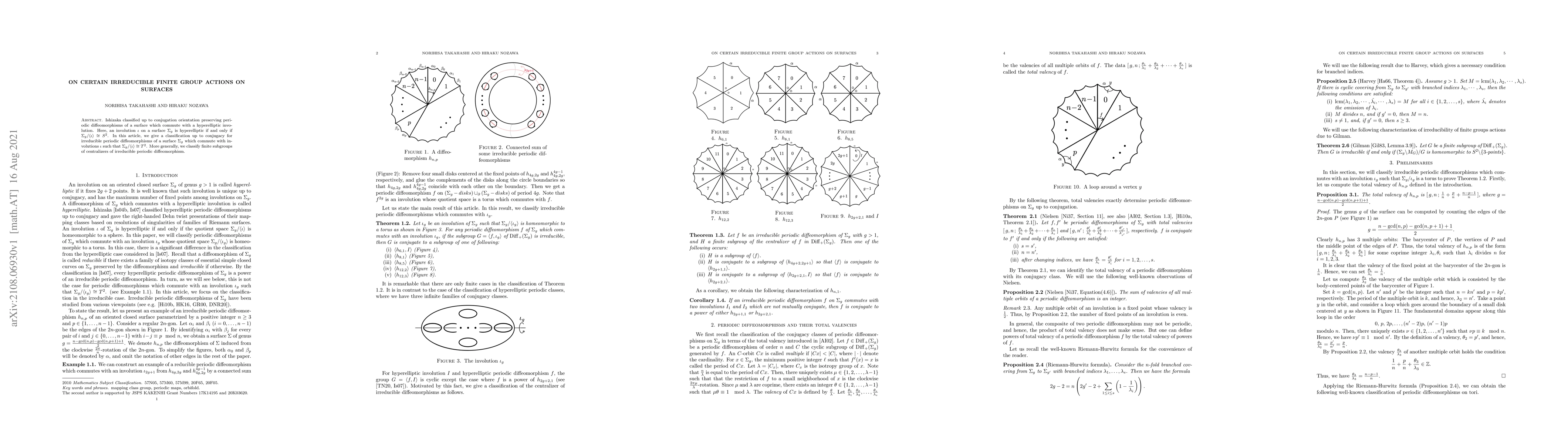 This research classifies irreducible periodic diffeomorphisms of a surface $Sigma_{g}$ that commute with involutions, under the condition that the quotient space $Sigma_{g}/langle iota angle$ is topologically a torus $T^{2}$. It also broadens this classification to finite subgroups within the centralizers of such irreducible periodic diffeomorphisms.