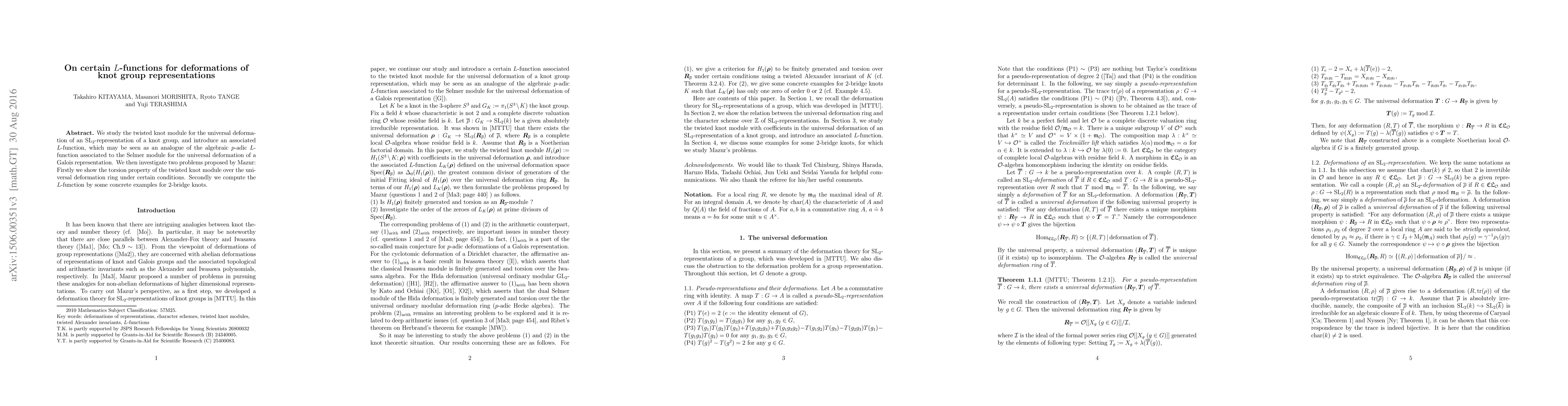 We study the twisted knot module for the universal deformation of an ${\rm SL}_2$-representation of a knot group, and introduce an associated $L$-function, which may be seen as an analogue of the algebraic $p$-adic $L$-function associated to the Selmer module for the universal deformation of a Galois representation. We then investigate two problems proposed by Mazur: Firstly we show the torsion property of the twisted knot module over the universal deformation ring under certain conditions. Secondly we verify the simplicity of the zeroes of the $L$-function by some concrete examples for 2-bridge knots.