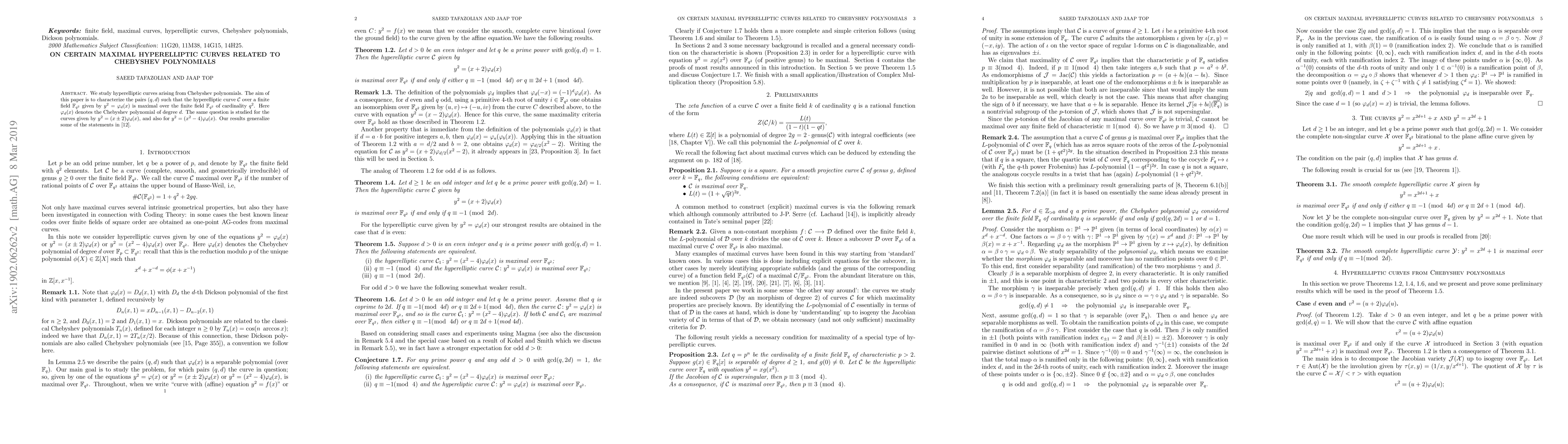 We study hyperelliptic curves arising from Chebyshev polynomials. The aim of this paper is to characterize the pairs $(q,d)$ such that the hyperelliptic curve $\cC$ over a finite field $\FF_{q^2}$ corresponding to the equation $y^2 = \varphi_{d}(x)$ is maximal over the finite field $\FF_{q^2}$ of cardinality $q^2$. Here $\varphi_{d}(x)$ denotes the Chebyshev polynomial of degree $d$. The same question is studied for the curves corresponding to $y^2=(x\pm 2) \varphi_{d}(x)$, and also for $y^2=(x^2-4)\varphi_d(x)$.