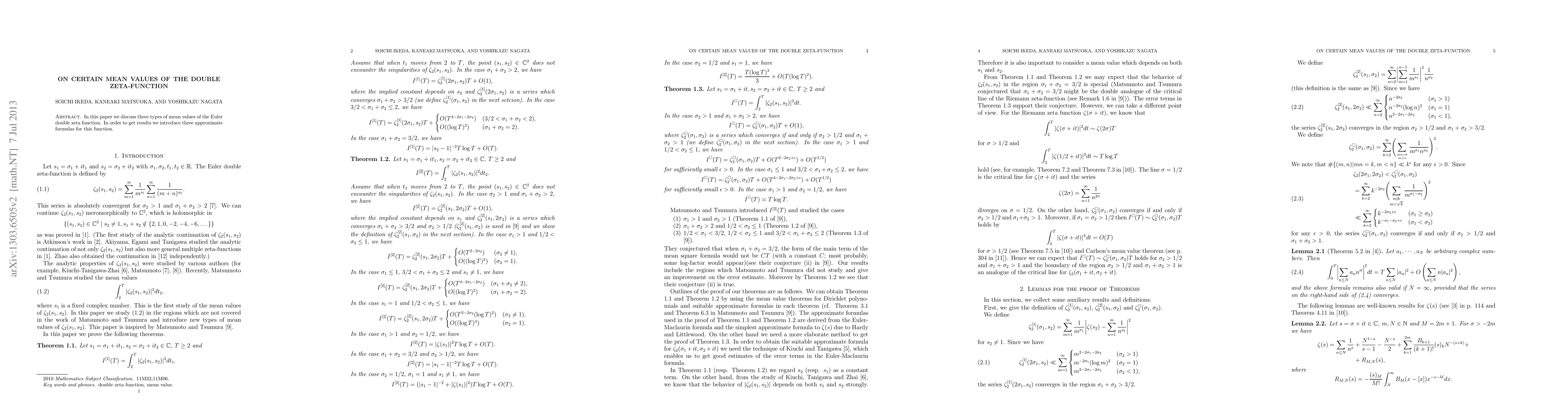 This paper investigates three types of mean values of the Euler double zeta function, introducing three approximate formulas to derive the results. The study focuses on understanding the behavior of these mean values through these approximations.