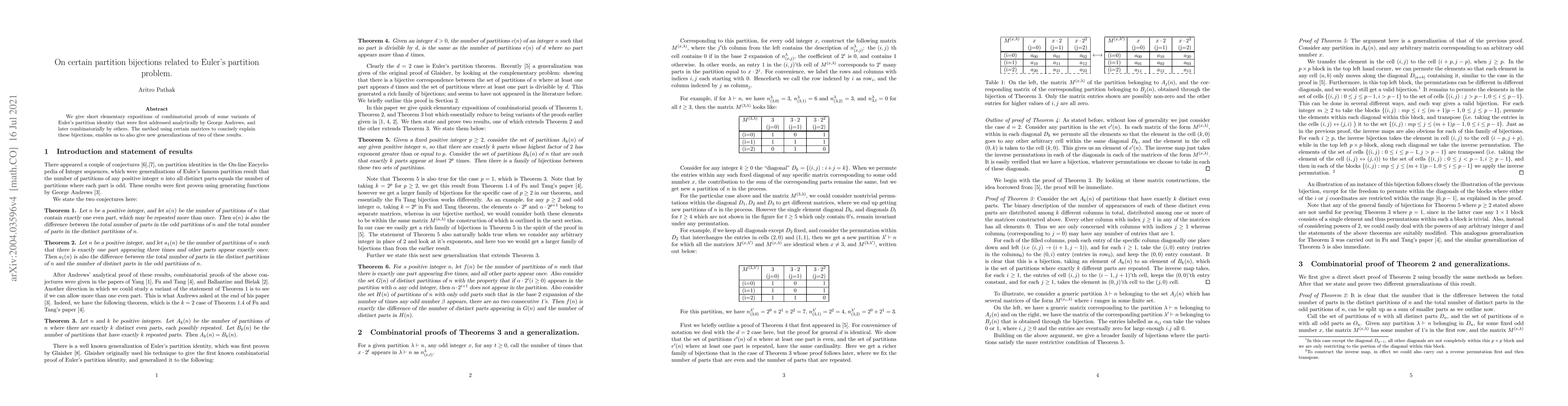 We give short elementary expositions of combinatorial proofs of some variants of Euler's partitition problem that were first addressed analytically by George Andrews, and later combinatorially by others. Our methods, based on ideas from a previous paper by the author , enable us to state and prove new generalizations of two of these results.