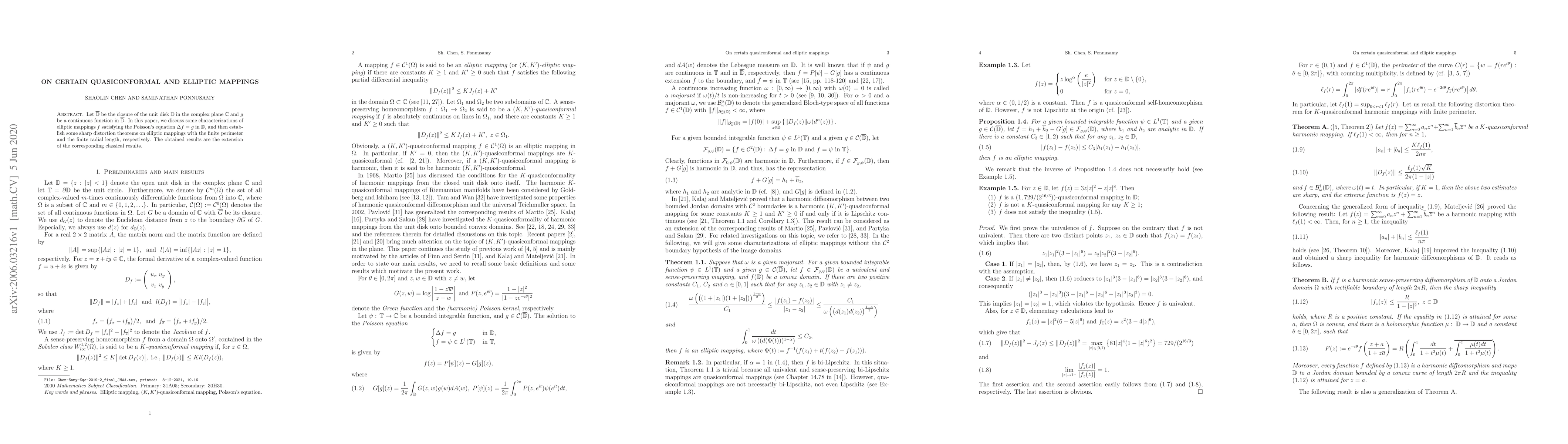 This paper explores elliptic mappings in the unit disk of the complex plane, satisfying Poisson's equation, and derives sharp distortion theorems for such mappings with finite perimeter and radial length. It extends classical results in the field.