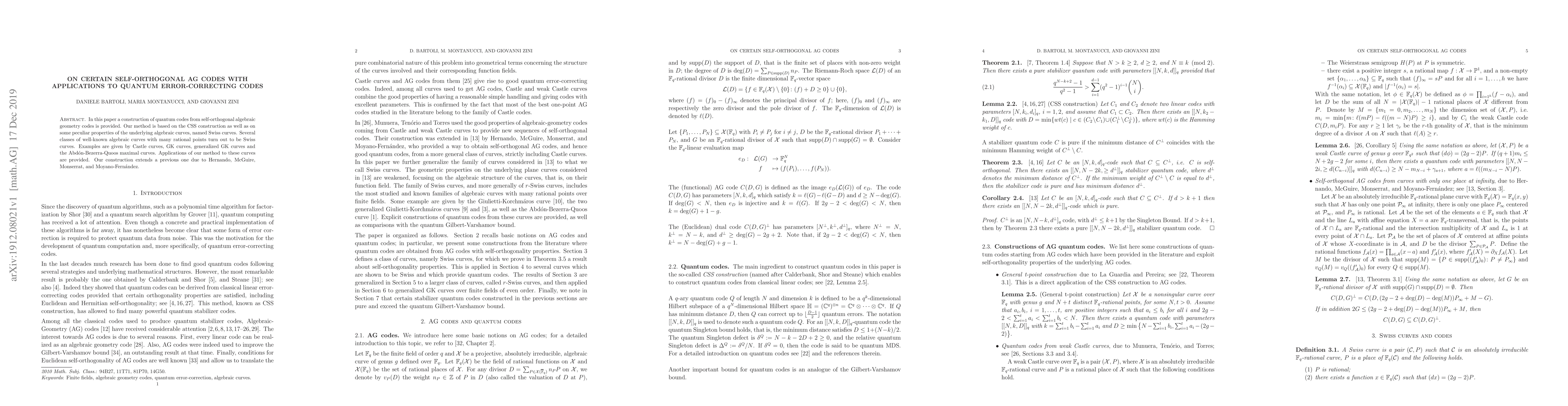 In this paper a construction of quantum codes from self-orthogonal algebraic geometry codes is provided. Our method is based on the CSS construction as well as on some peculiar properties of the underlying algebraic curves, named Swiss curves. Several classes of well-known algebraic curves with many rational points turn out to be Swiss curves. Examples are given by Castle curves, GK curves, generalized GK curves and the Abdon-Bezerra-Quoos maximal curves. Applications of our method to these curves are provided. Our construction extends a previous one due to Hernando, McGuire, Monserrat, and Moyano-Fernandez.
