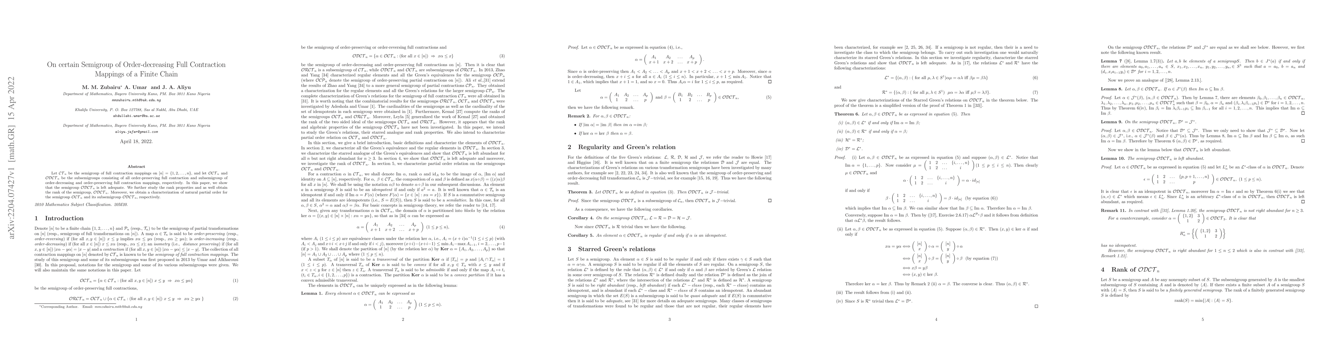 This paper investigates the semigroup $\mathcal{ODCT}_n$ of order-decreasing full contraction mappings on a finite chain, proving its left adequacy. It also explores rank properties and provides a characterization of the natural partial order for $\mathcal{OCT}_n$ and $\mathcal{ODCT}_n$.