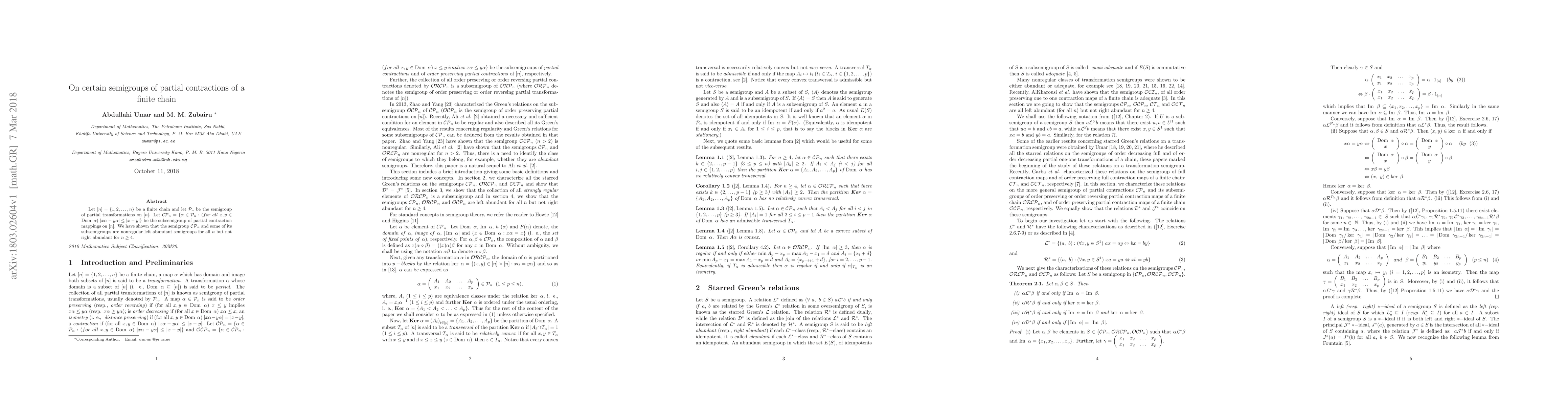 Let $[n]=\{1,2,\ldots,n\}$ be a finite chain and let $\mathcal{P}_{n}$ be the semigroup of partial transformations on $[n]$. Let $\mathcal{CP}_{n}=\{\alpha\in \mathcal{P}_{n}: (for ~all~x,y\in Dom~\alpha)~|x\alpha-y\alpha|\leq|x-y|\}$ be the subsemigroup of partial contraction mappings on $[n]$. We have shown that the semigroup $\mathcal{CP}_{n}$ and some of its subsemigroups are nonregular left abundant semigroups for all $n$ but not right abundant for $n\geq 4$.