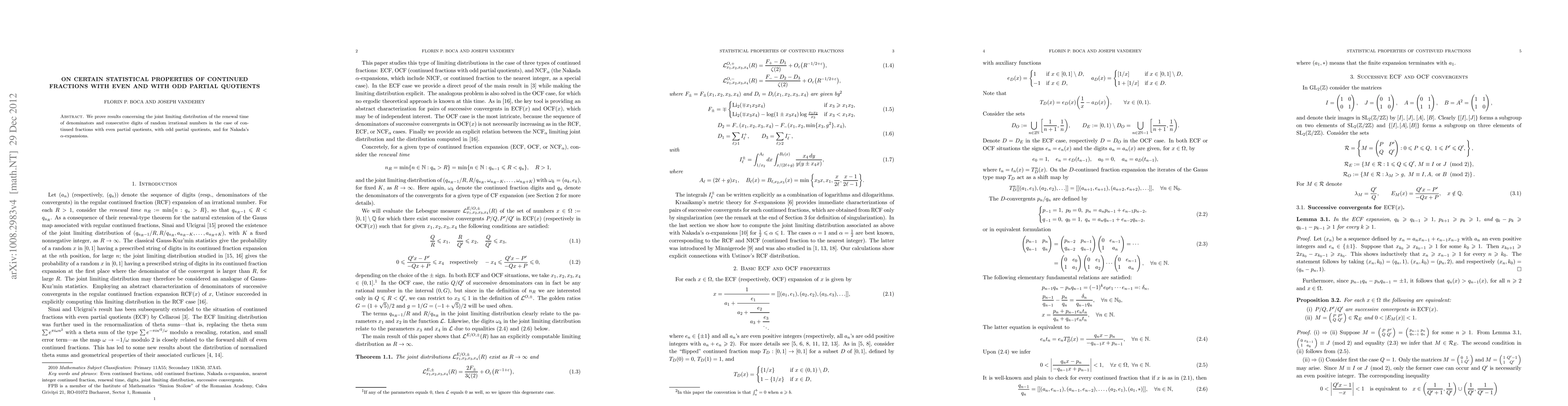 Summary: This paper investigates the statistical properties of continued fractions with even and odd partial quotients, proving results on the joint limiting distribution of renewal times of denominators and consecutive digits for both types, as well as for Nakada's \alpha-expansions.
